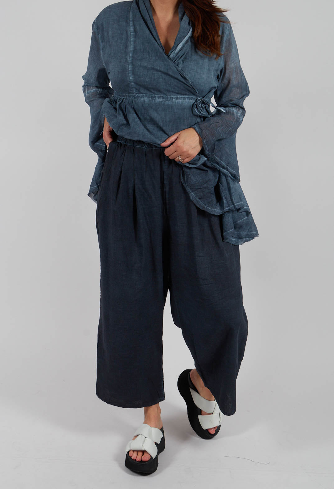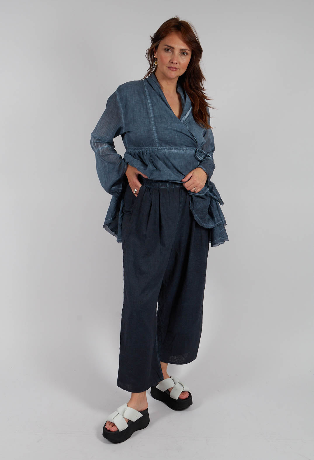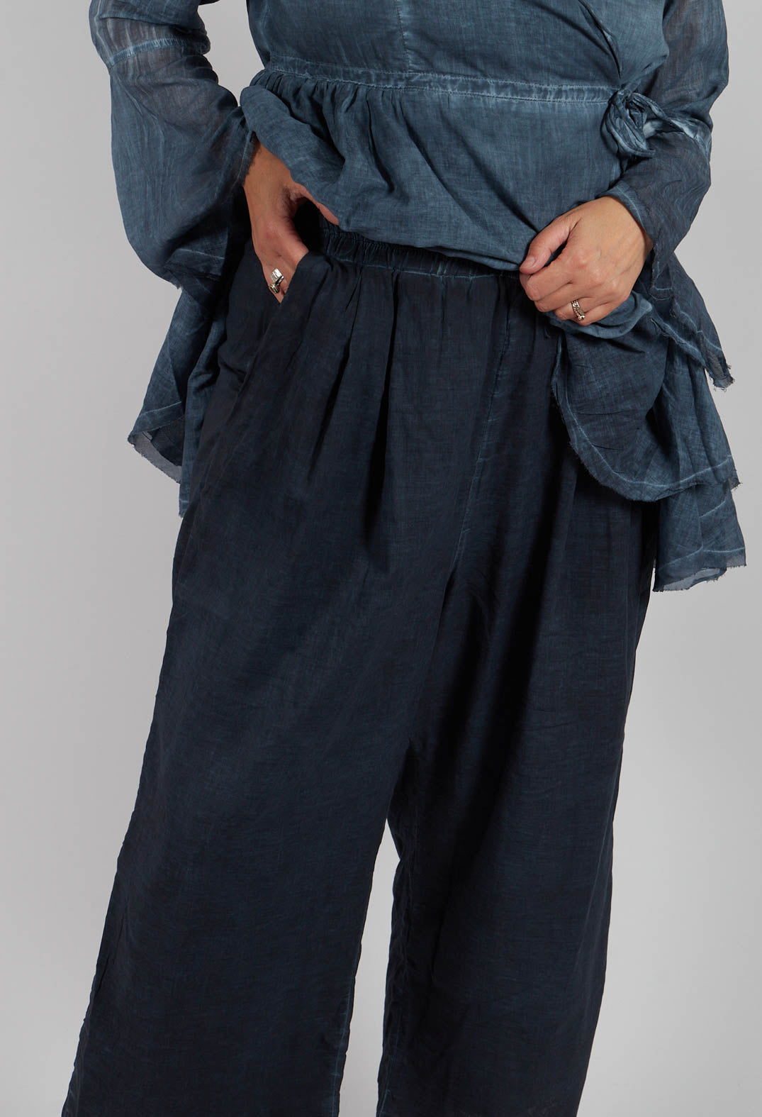 Light Weight Cotton Barrel Trousers in Indigo by Amici