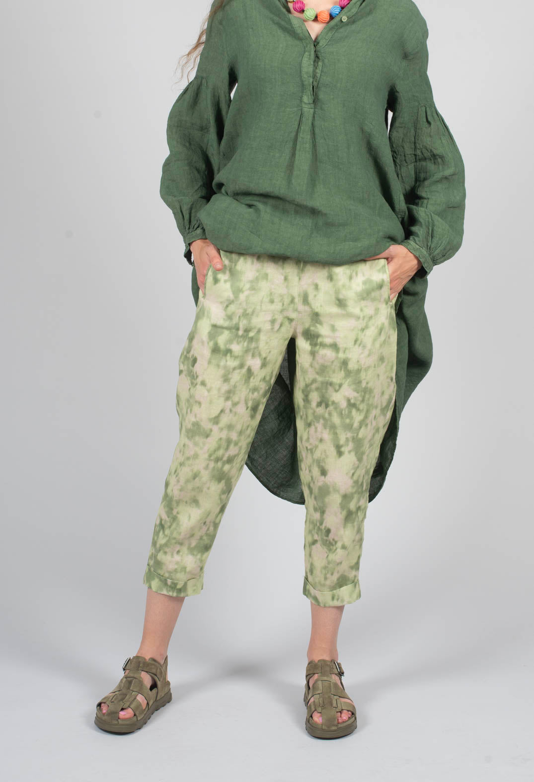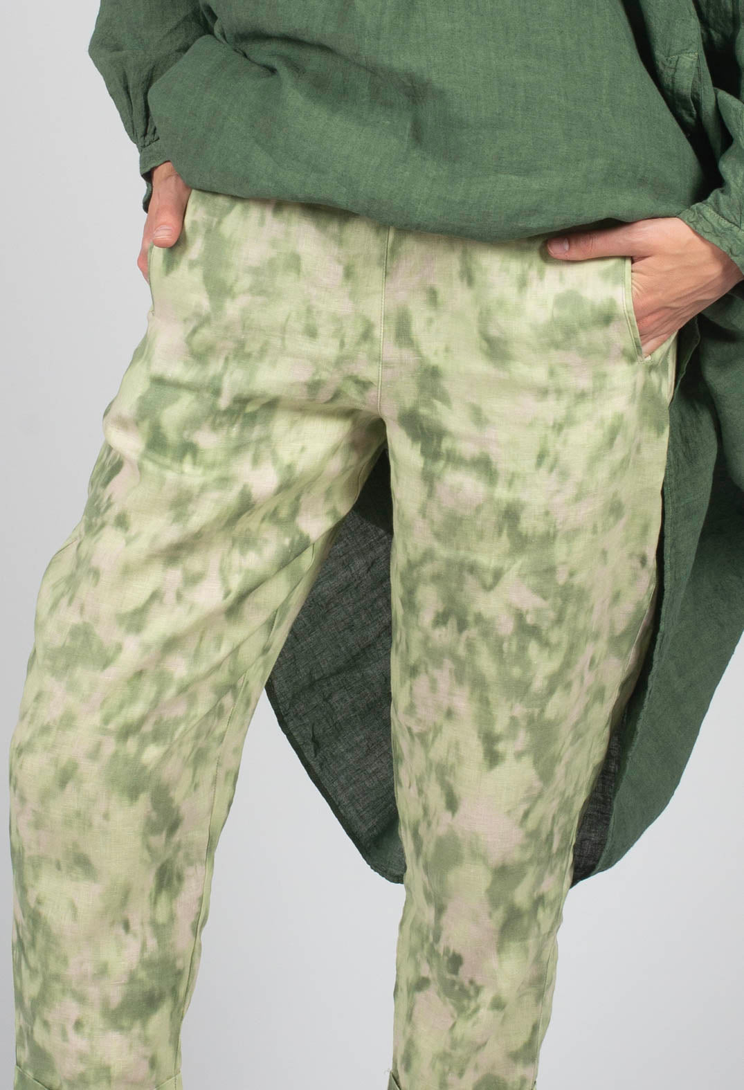 Linen Geisha Pants in Spring Green Print by Elemente Clemente