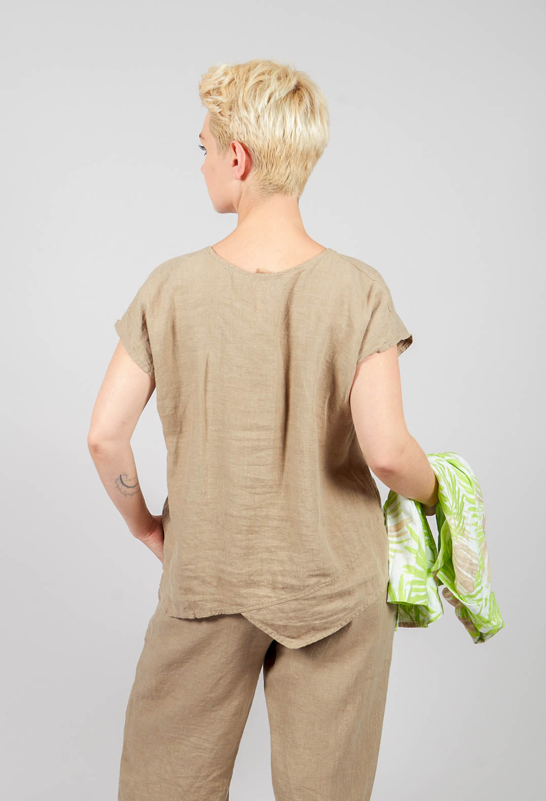 Linen Short Sleeve Top in Putty