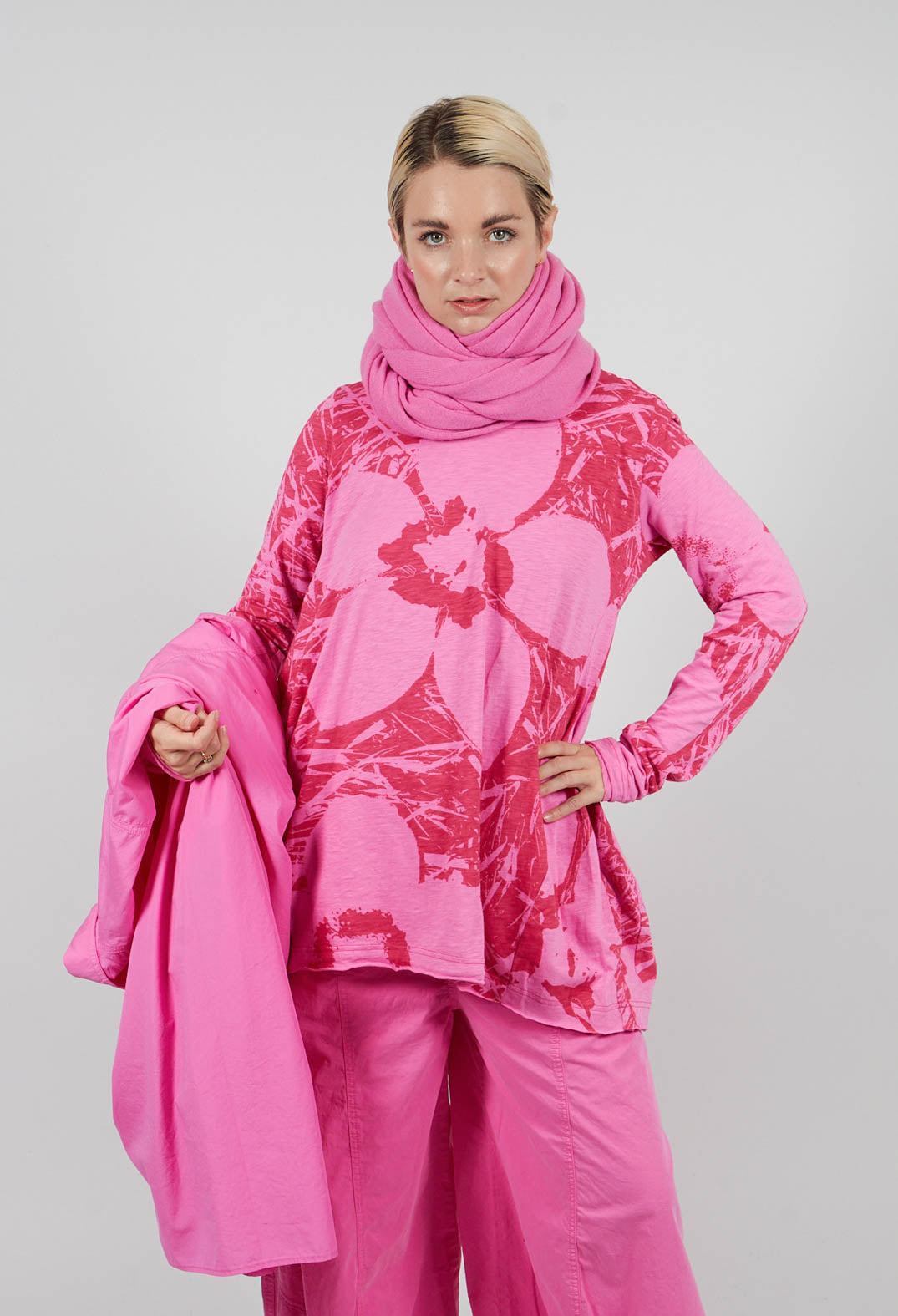 Long Sleeve T-Shirt with Flared Hem in Lotus Print - 3640506