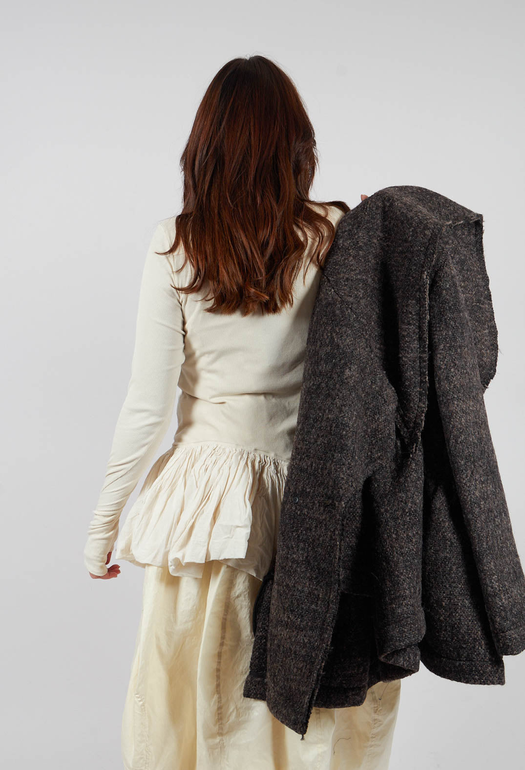 Long Sleeve T-Shirt with Peplum Hem in Bone - 1180505
