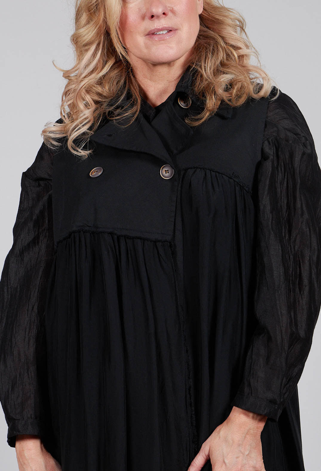 Long Sleeveless Coat in Contone and Viscosa Seta Nero by Sanctamuerte