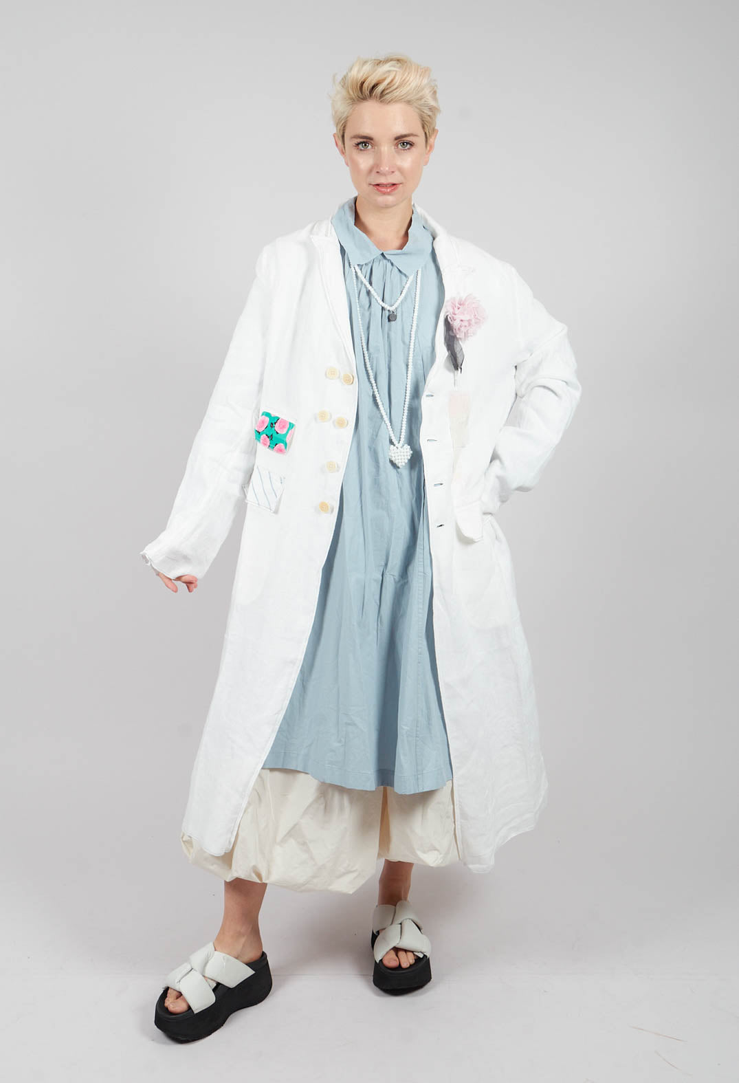Longline Patch Pocket Coat in Original White Stripe