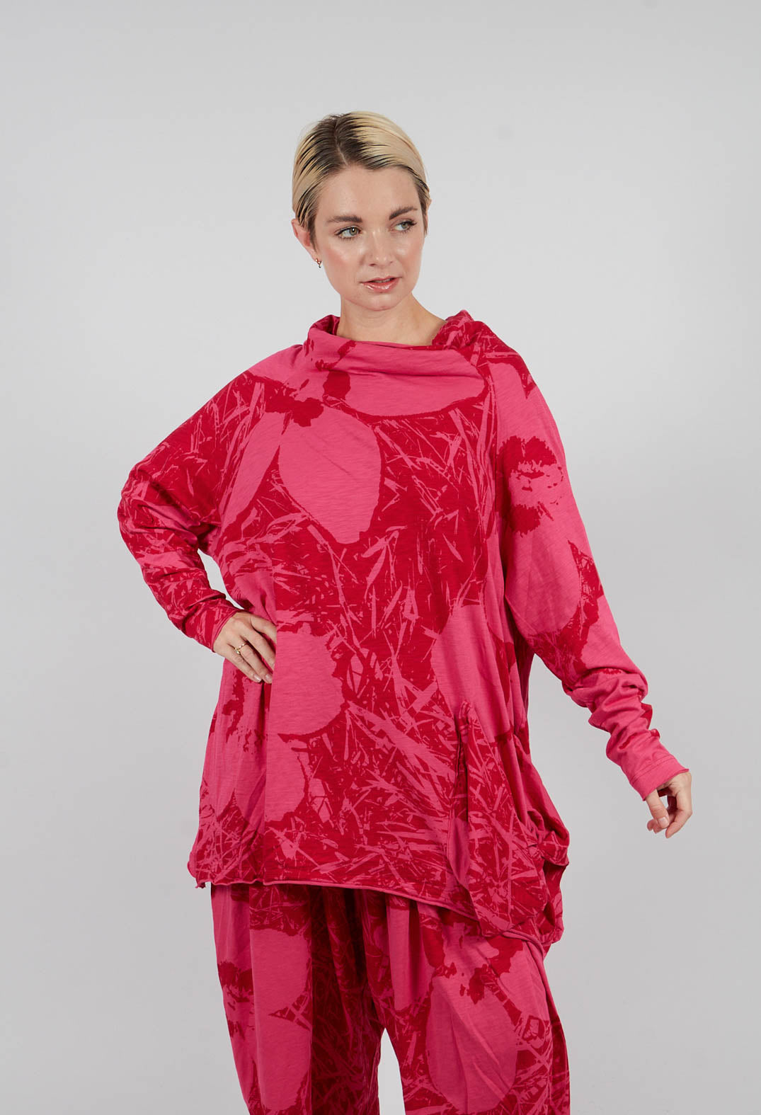 Longline Top with Feature Pocket in Rose Print - 3640502