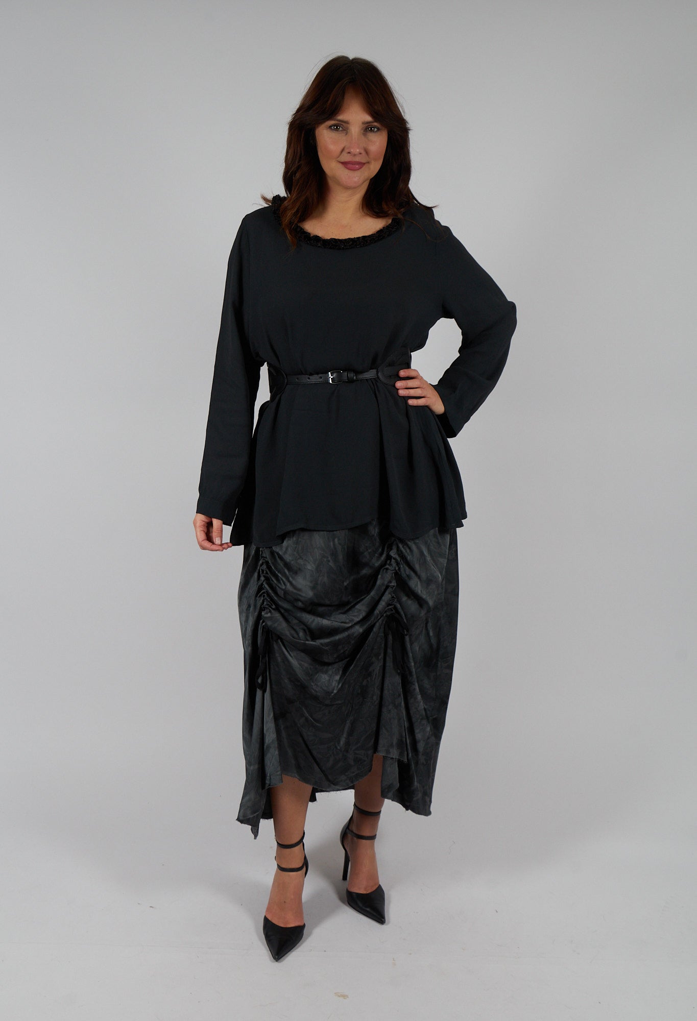 Loose Crepe Tunic with Velvet Patterned Trim in Flint by Out of Xile