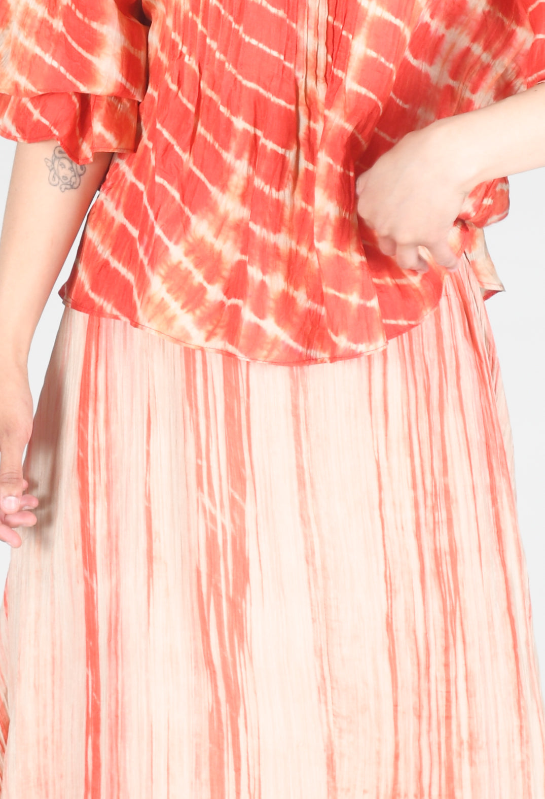 Lotus Skirt in Coral and Beige by Bianco Levrin
