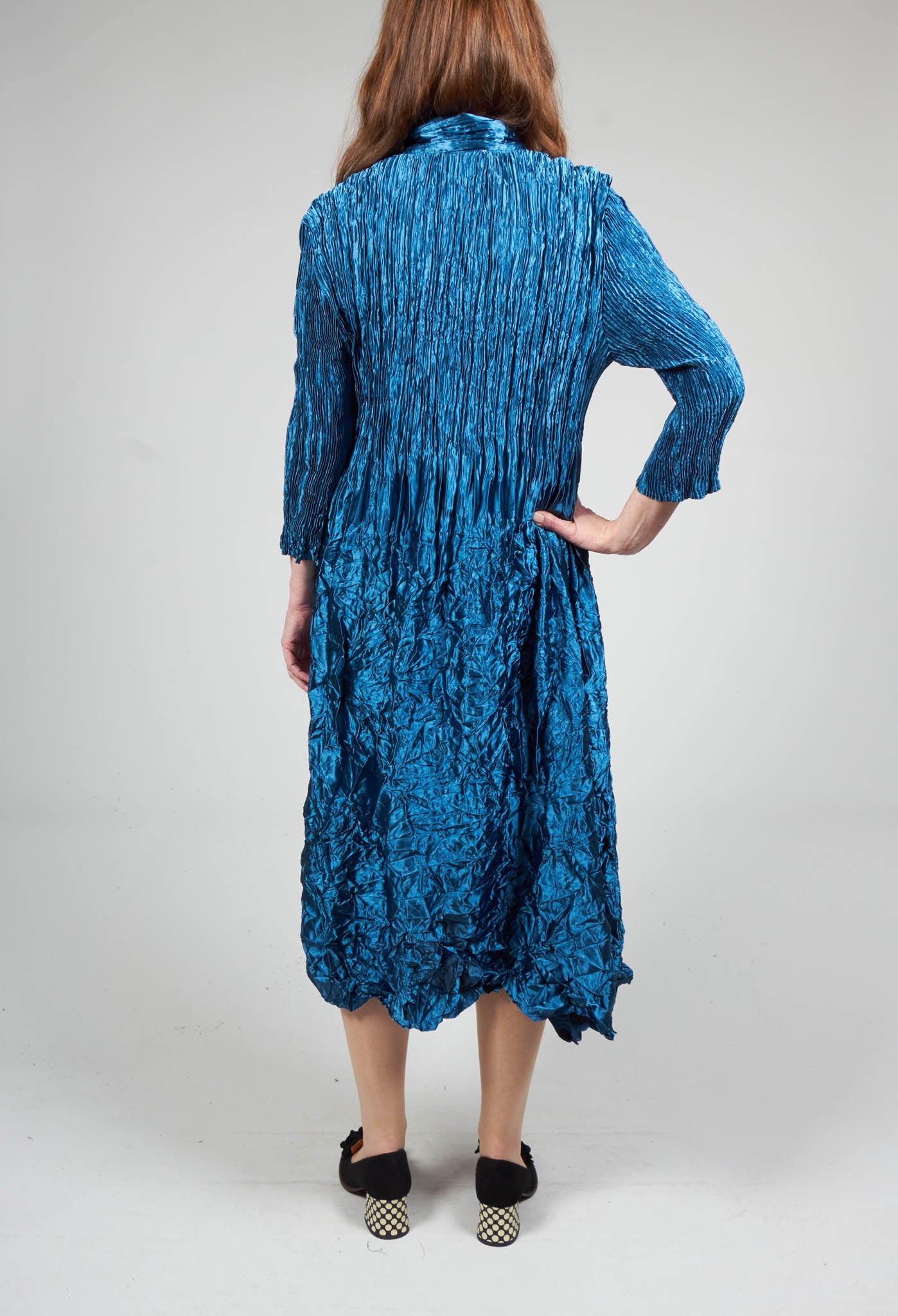 Metallic Nehru Coat Dress in Steel Blue by Alquema