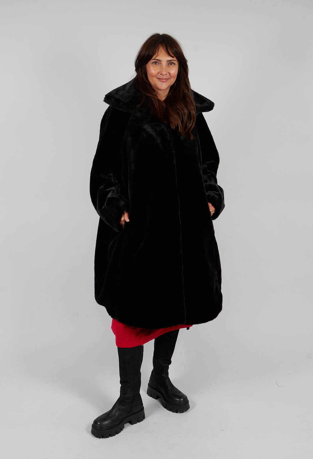 Oversized Faux Fur Coat in Black - 3431202