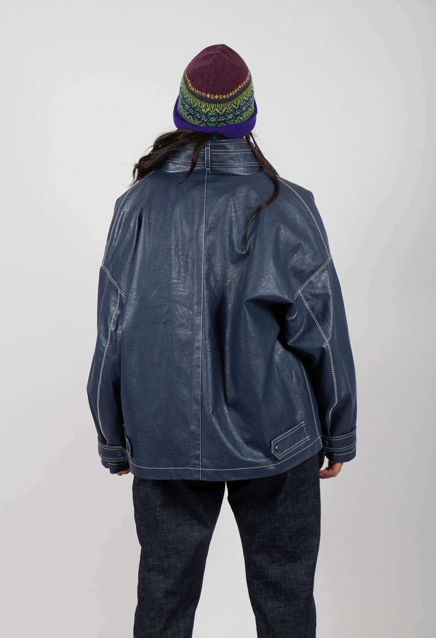Parka Faux Leather Jacket in Blue Notte by Beatrice B