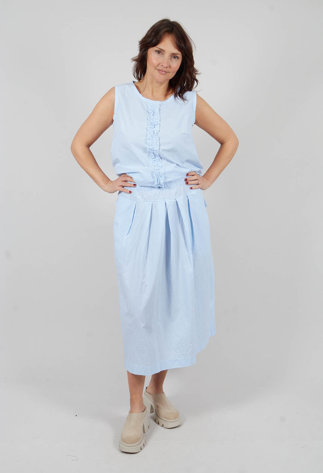 Pesci C Skirt in Celeste Check by Mama B