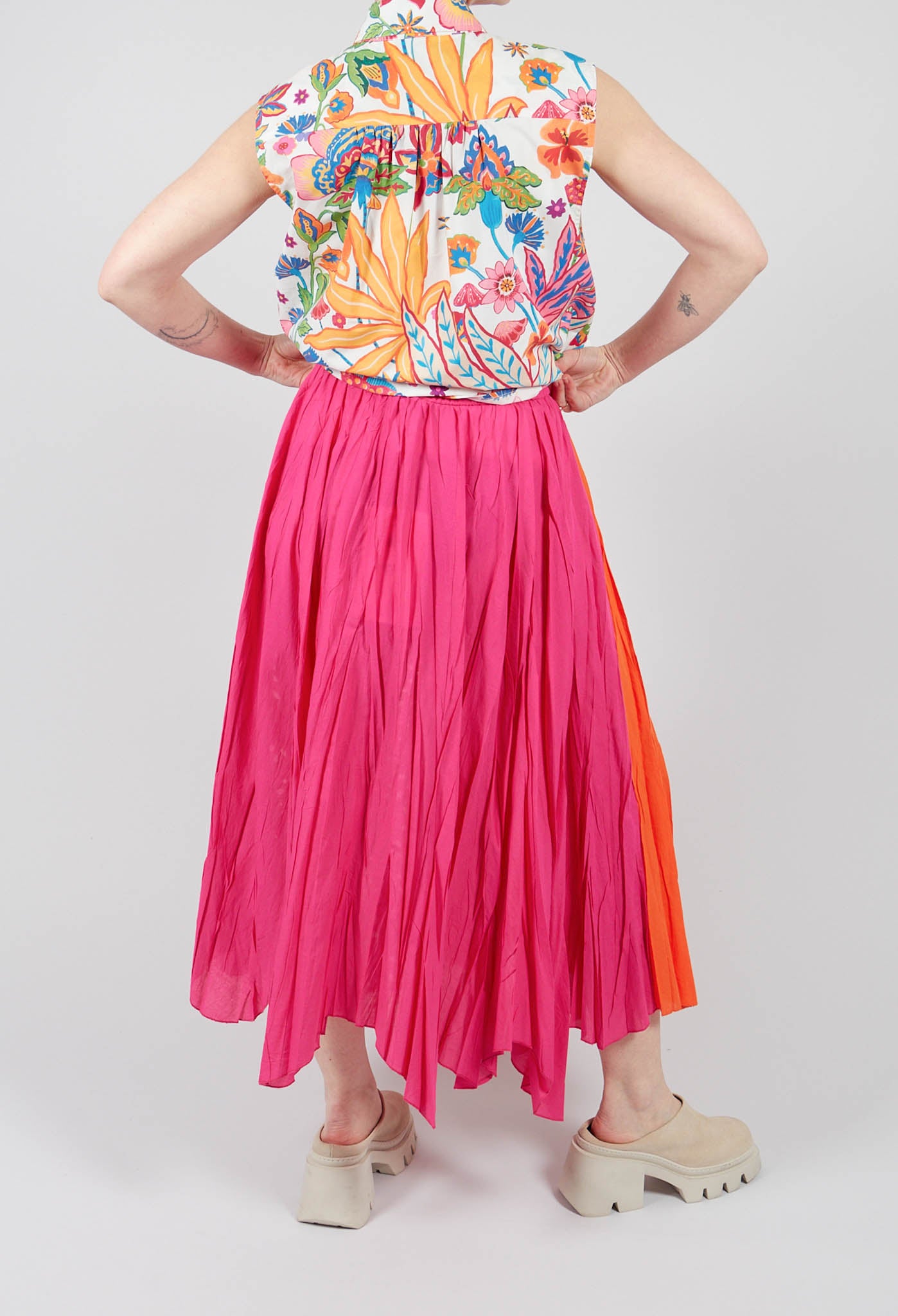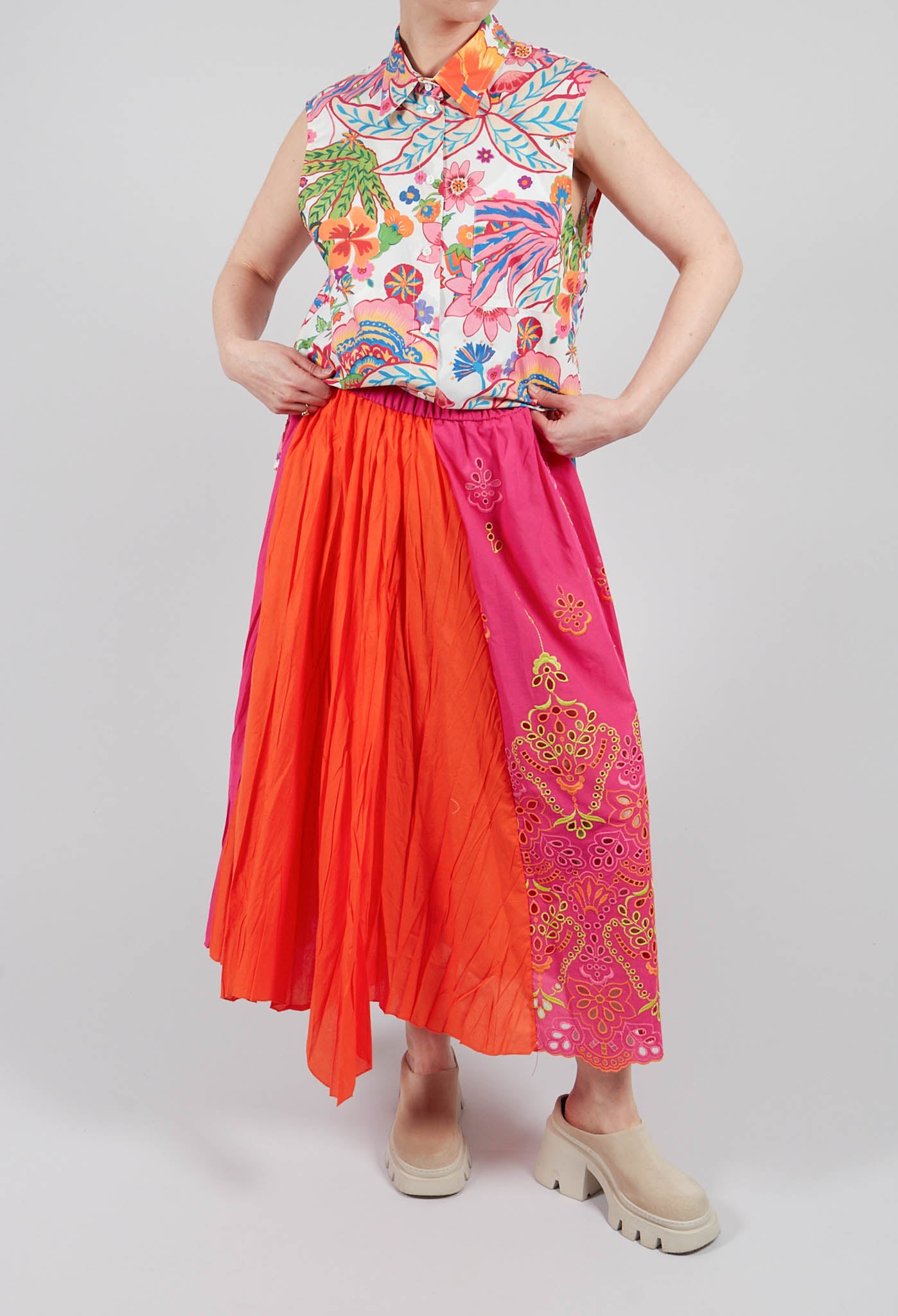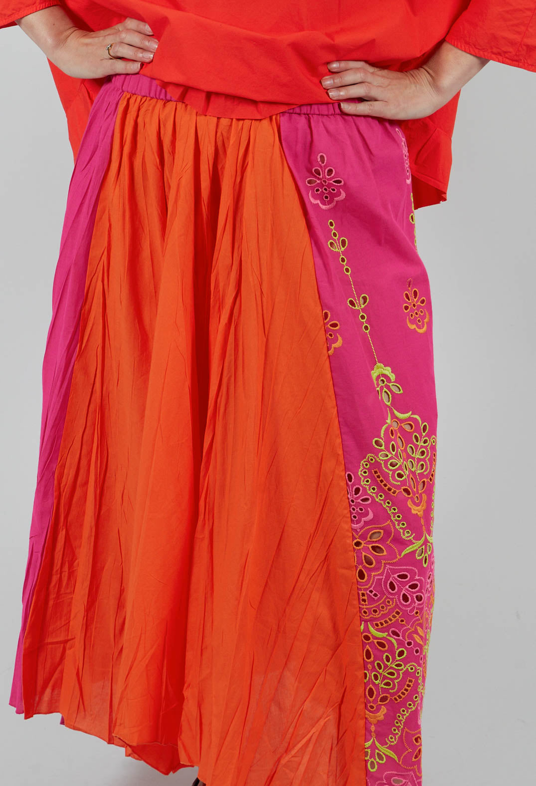 Pleated Skirt with Sangallo Embroidery in Party Punch