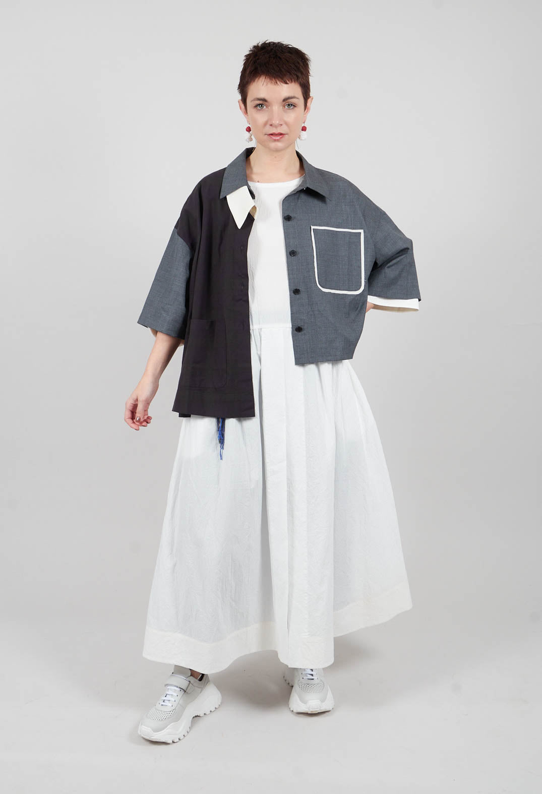 These tailored trousers in a muted gray offer the perfect blend of structure and ease. With pleated front detailing, they provide a relaxed yet refined fit, while the cropped length and cuffed hems add a contemporary edge. The smooth, medium-weight fabric gives them a sophisticated, versatile look that easily transitions from work to weekend. A fitted waist ensures a flattering silhouette, while subtle creases down the front of each leg enhance the trousers' sharp, polished appeal. Ideal for both casual and polished outfits, these trousers are a timeless addition to any wardrobe.