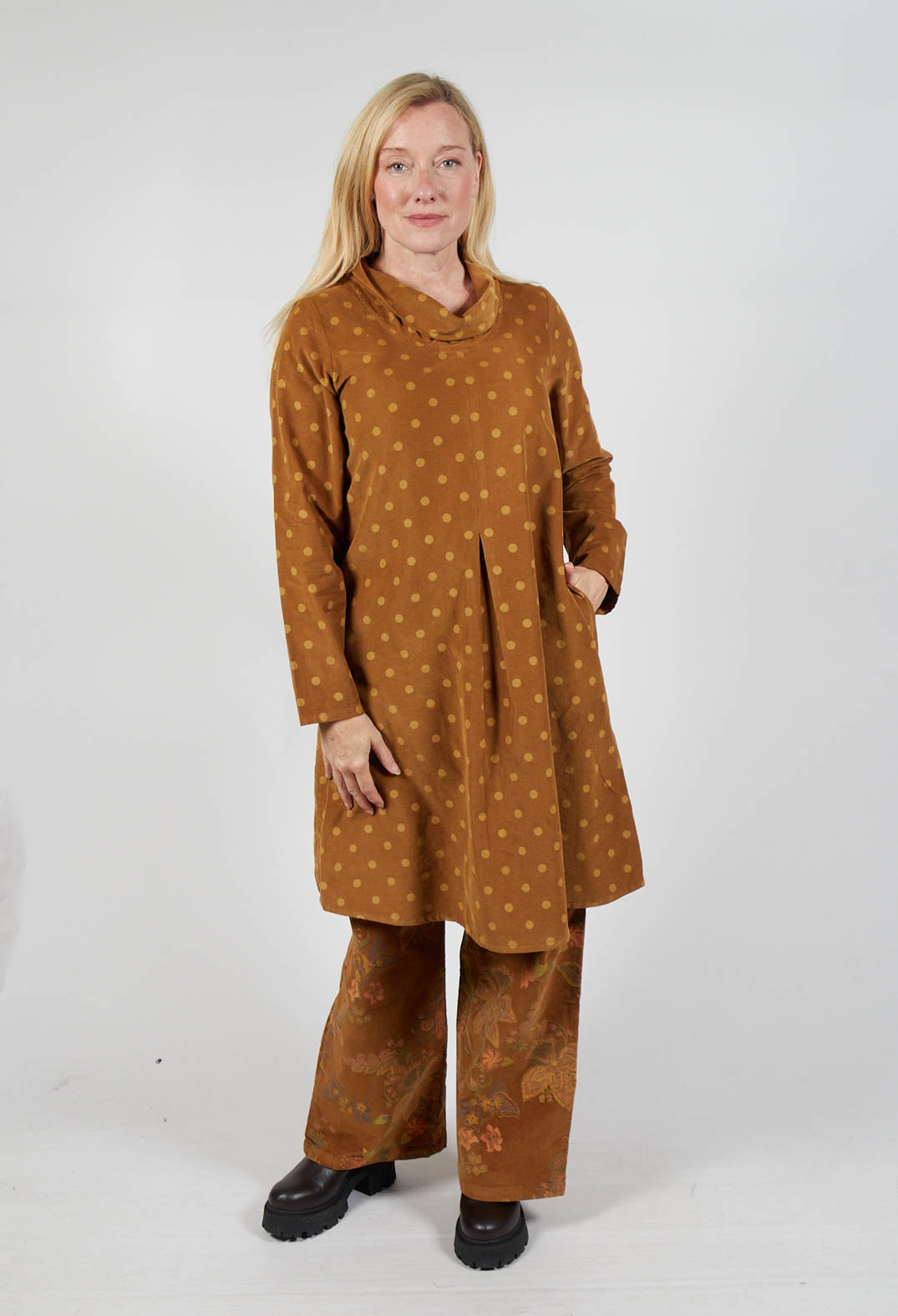 Polkadot Needlecord Cowl Neck Dress in Tabacco