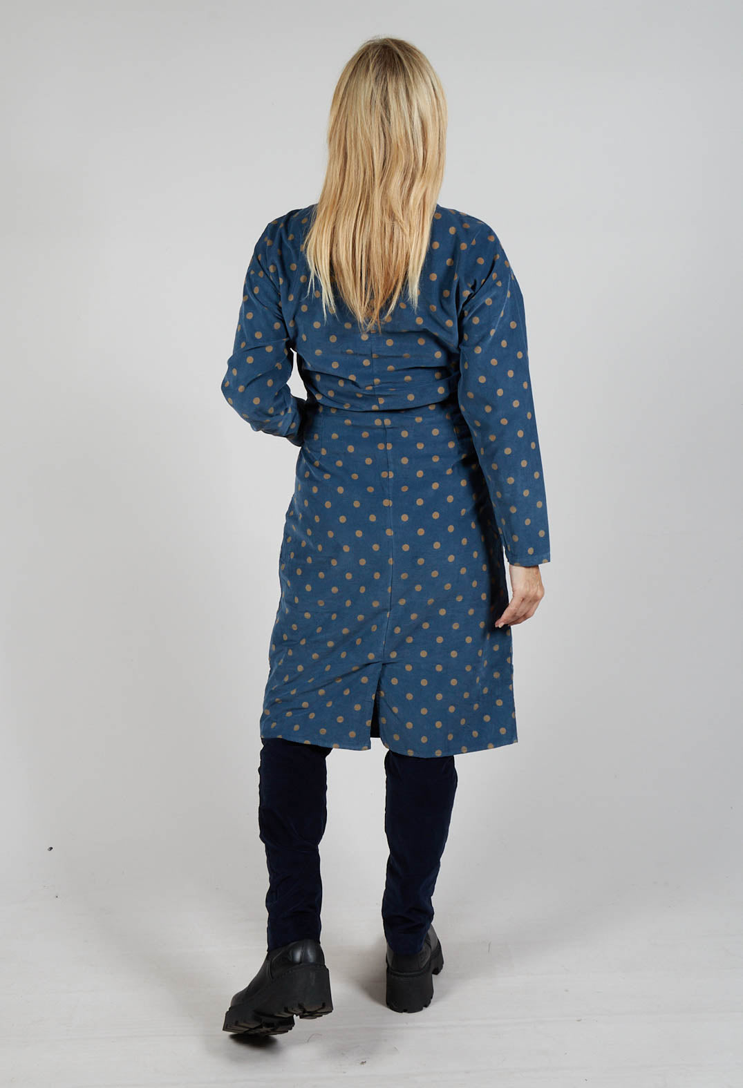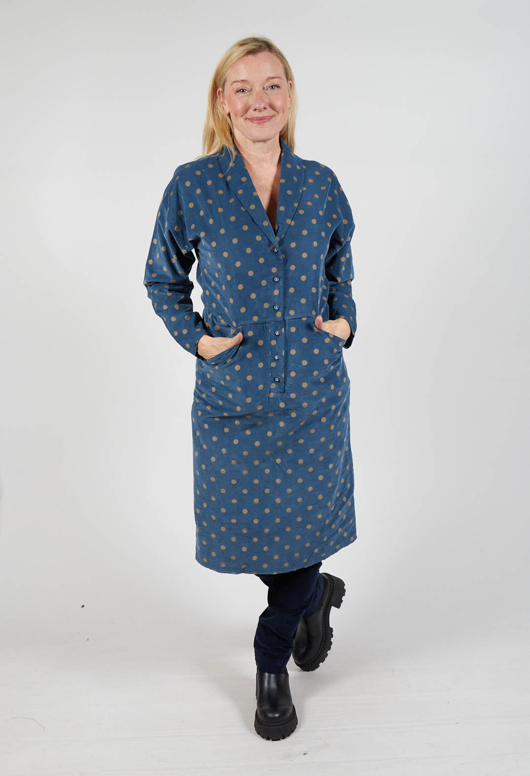 Polkadot Needlecord Open Collar Shirt Dress in Navy