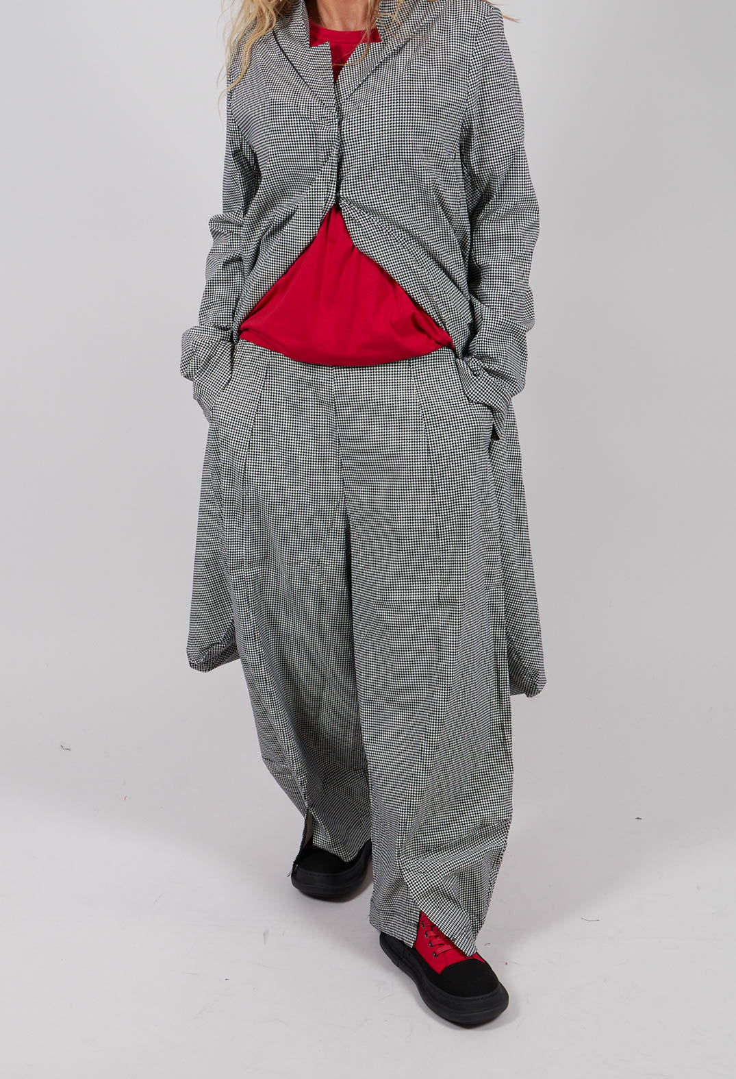 Pull On Balloon Leg Trousers in Black Off White Check - 3440130