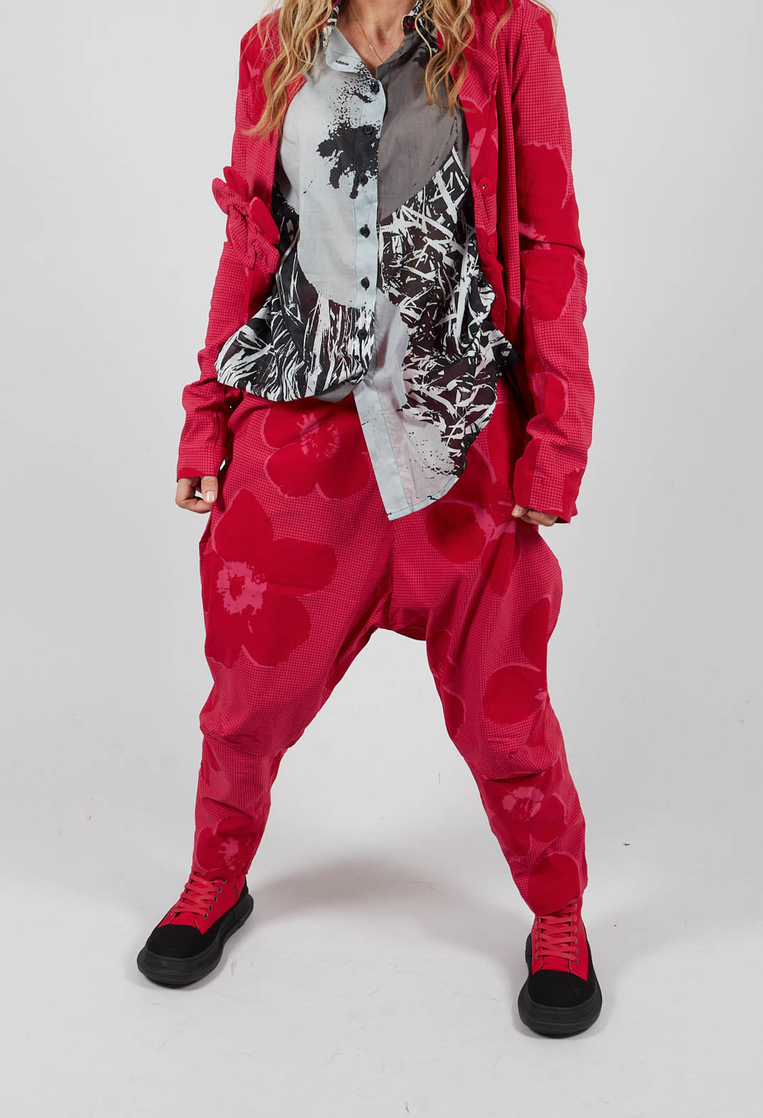 Pull On Drop Crotch Trousers in Rose Print - 3440111