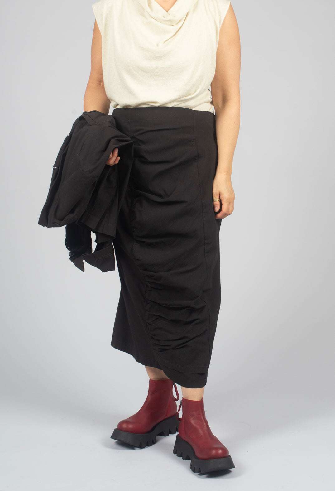 Pull On Ruched Pencil Skirt in Turf - 1210305