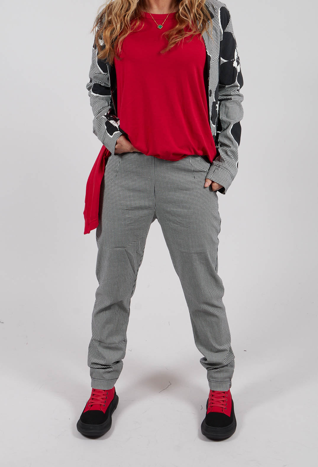Pull On Skinny Fit Trousers in Black Off White Check - 3440132