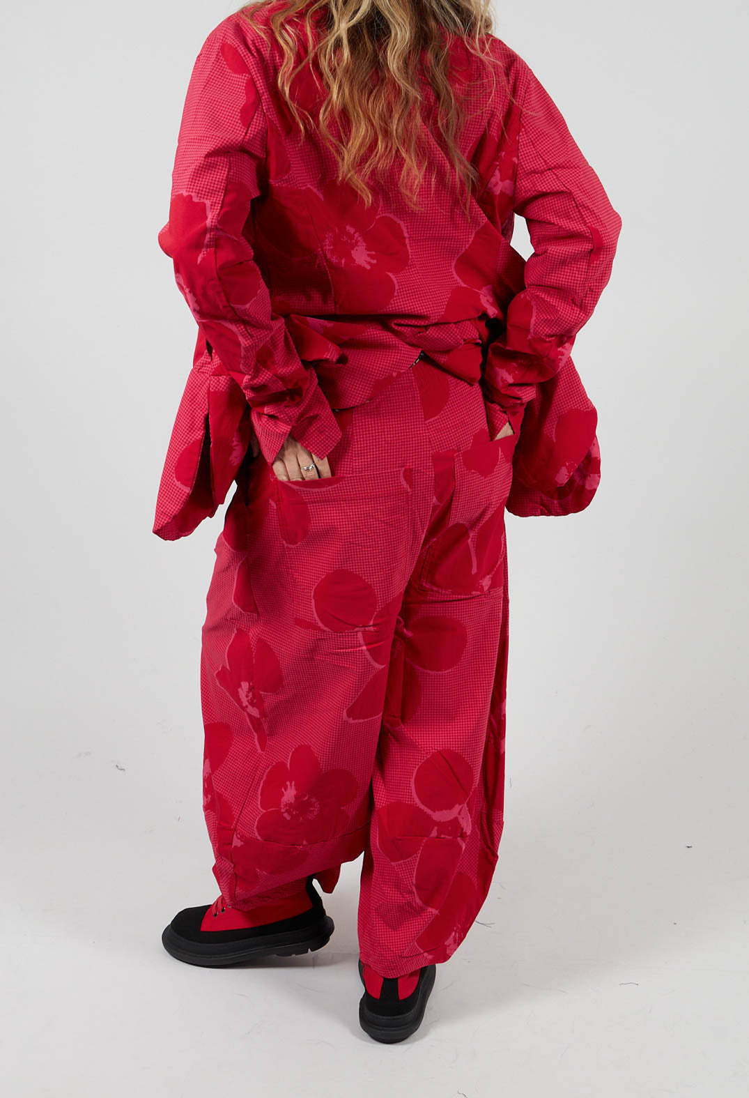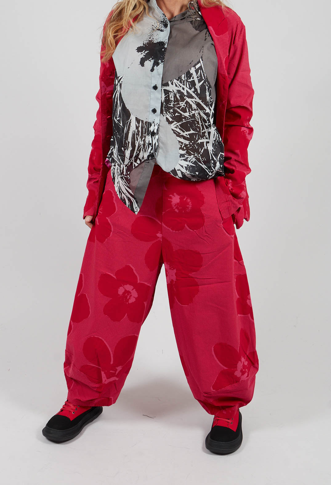 Pull On Tulip Leg Trousers in Rose Print - 3440116