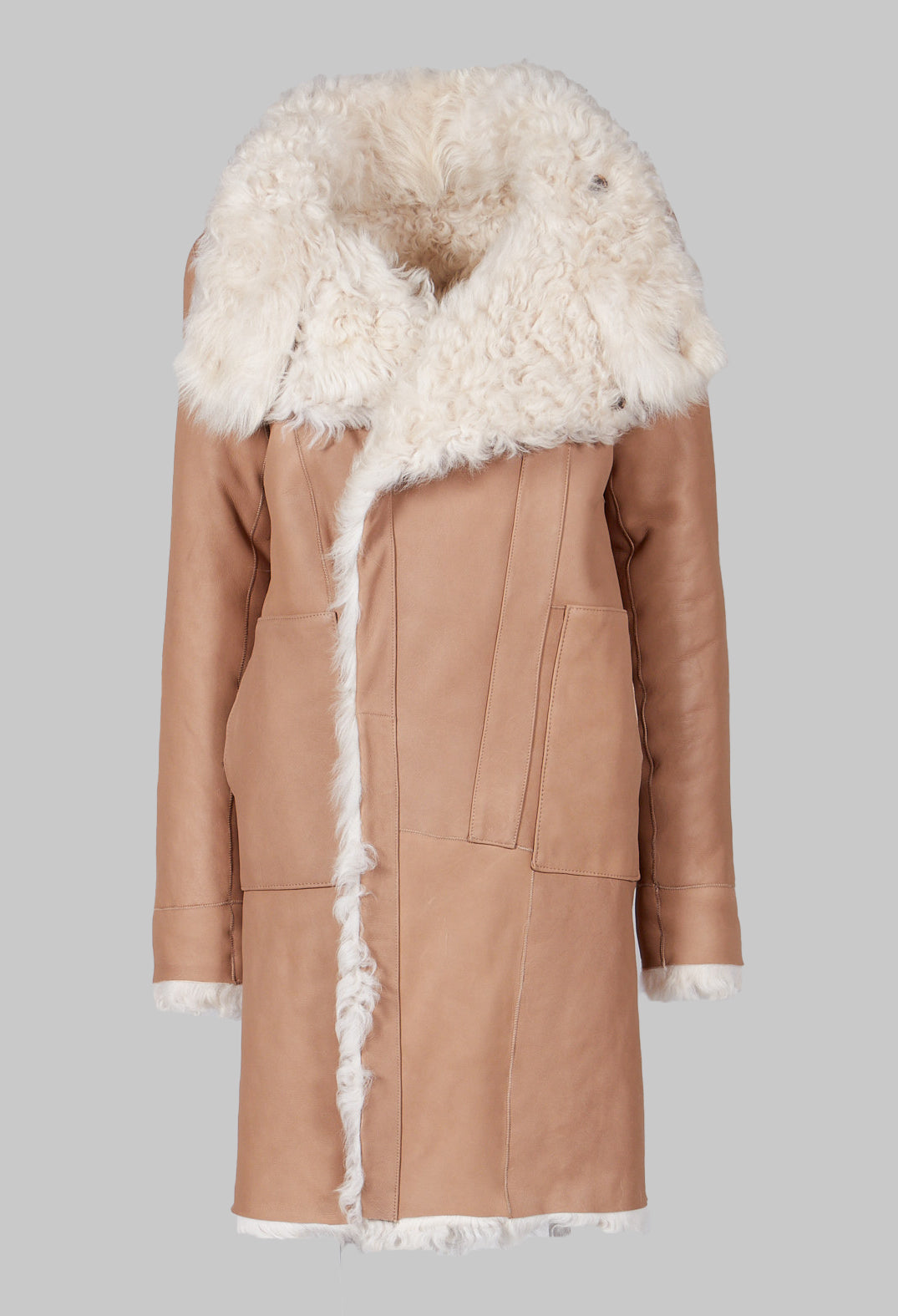 Reversible Toscana Coat with Fur Lining in Camel Cream