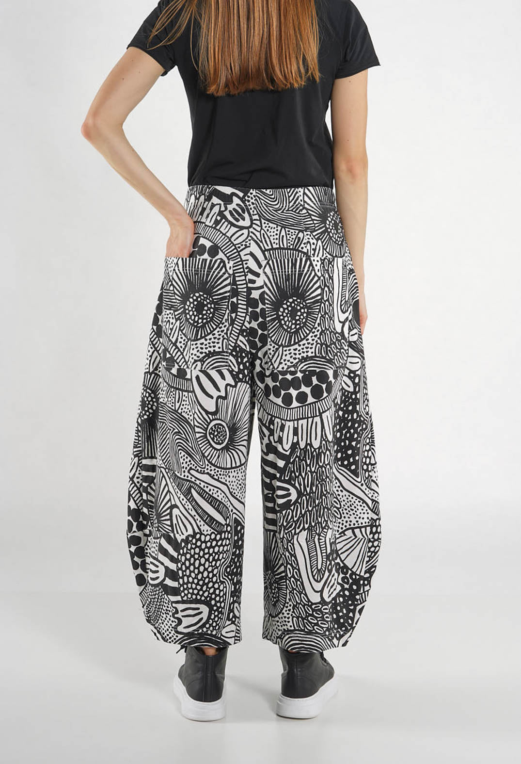 PRE-ORDER - Pull On Balloon Trousers in Off White Check - 3440109 (Pictured in Black Print) by Rundholz Black Label