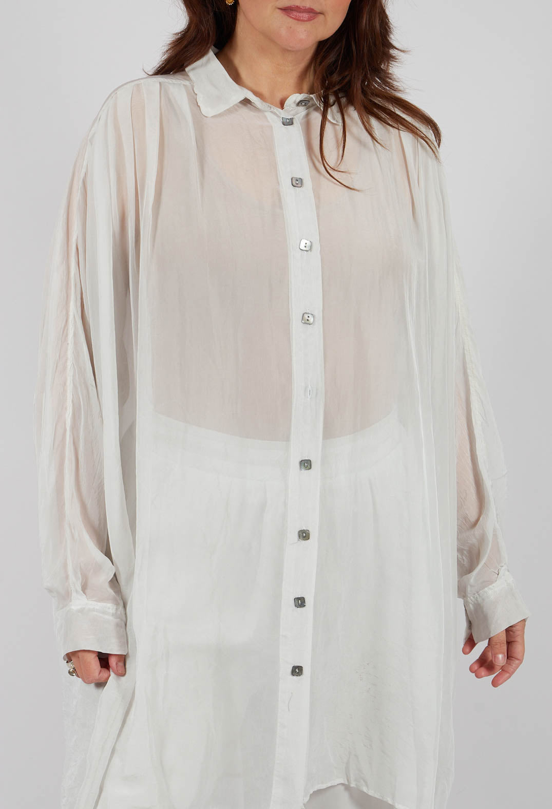 Sheer Collared Longline Shirt in Ice by Amici