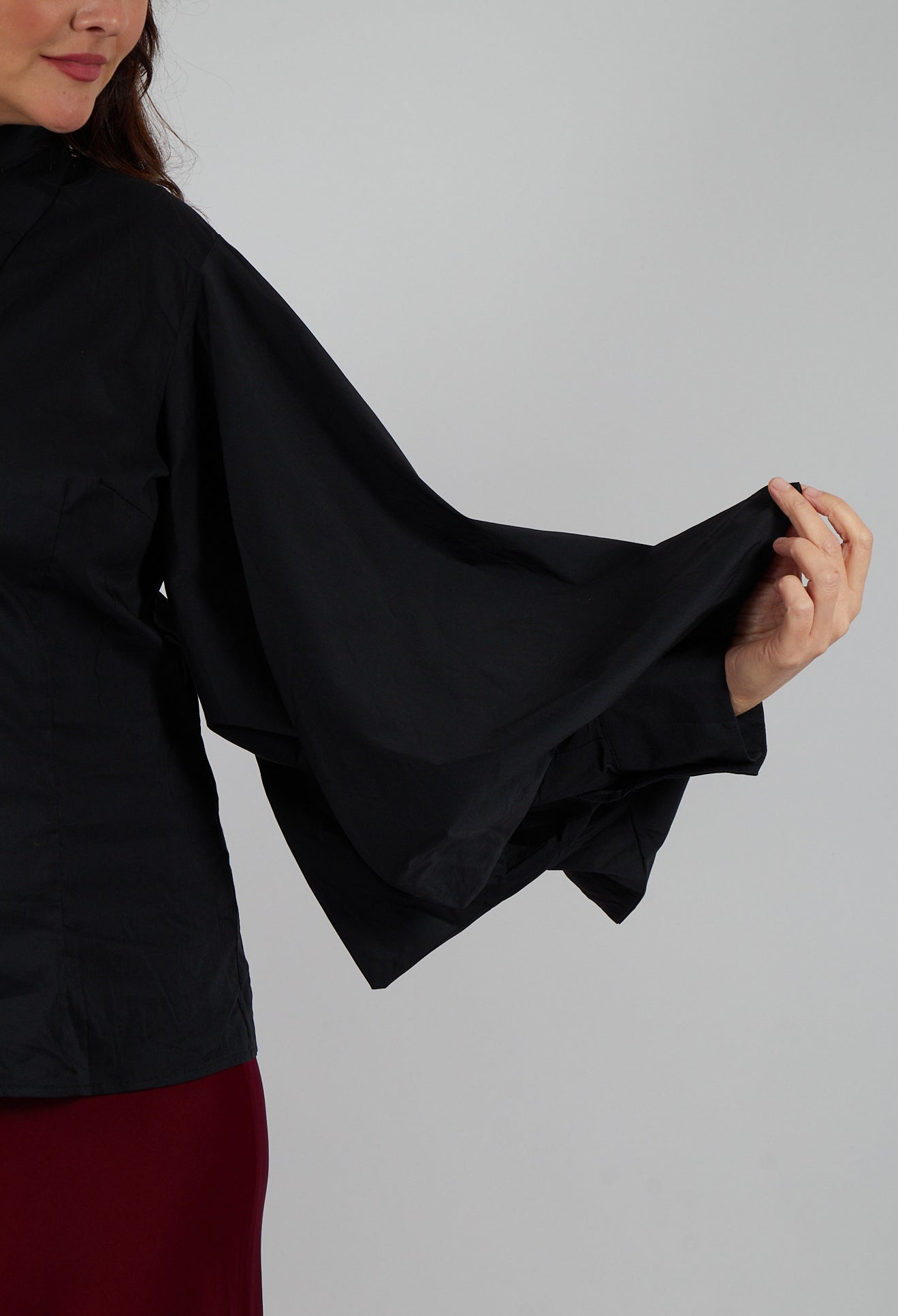 Shirt with Flared Puff Sleeves in Black by Oblique Creations