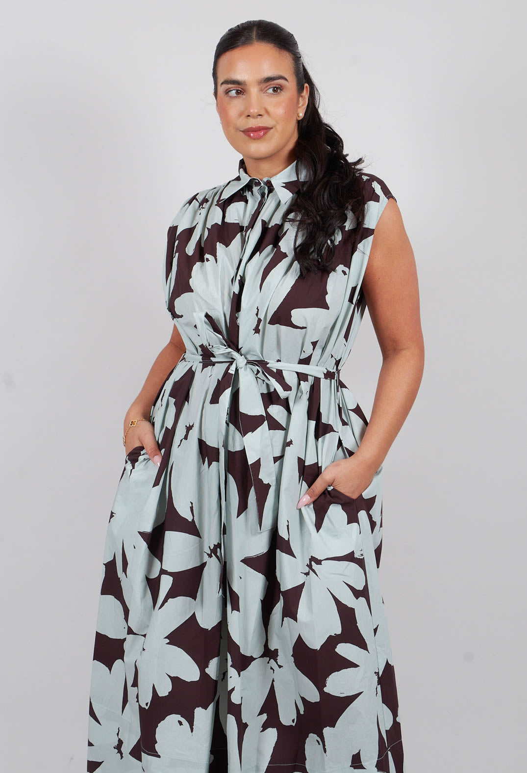 Sleeveless Shirt Dress in Stampa Moka and Menta by Mei Meij