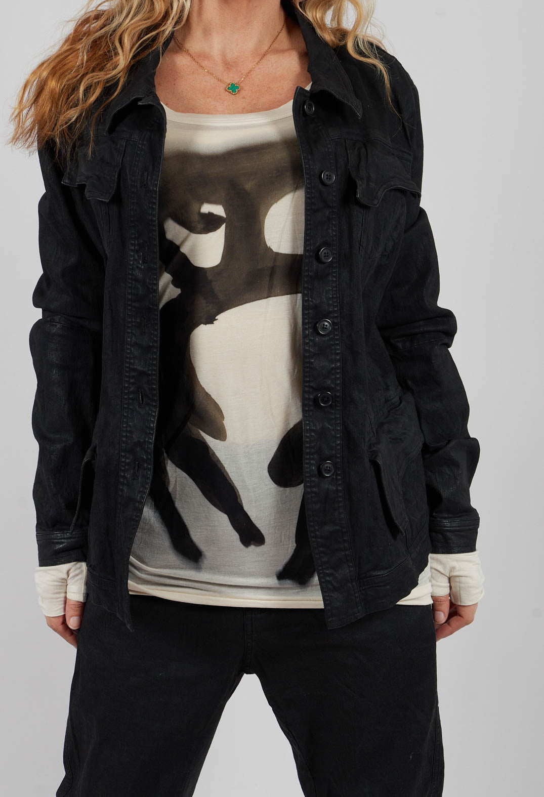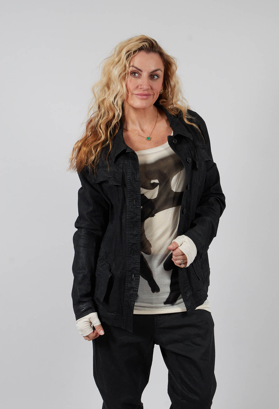 Slim Leg Trousers with Belt in Black Gloss - 1070101
