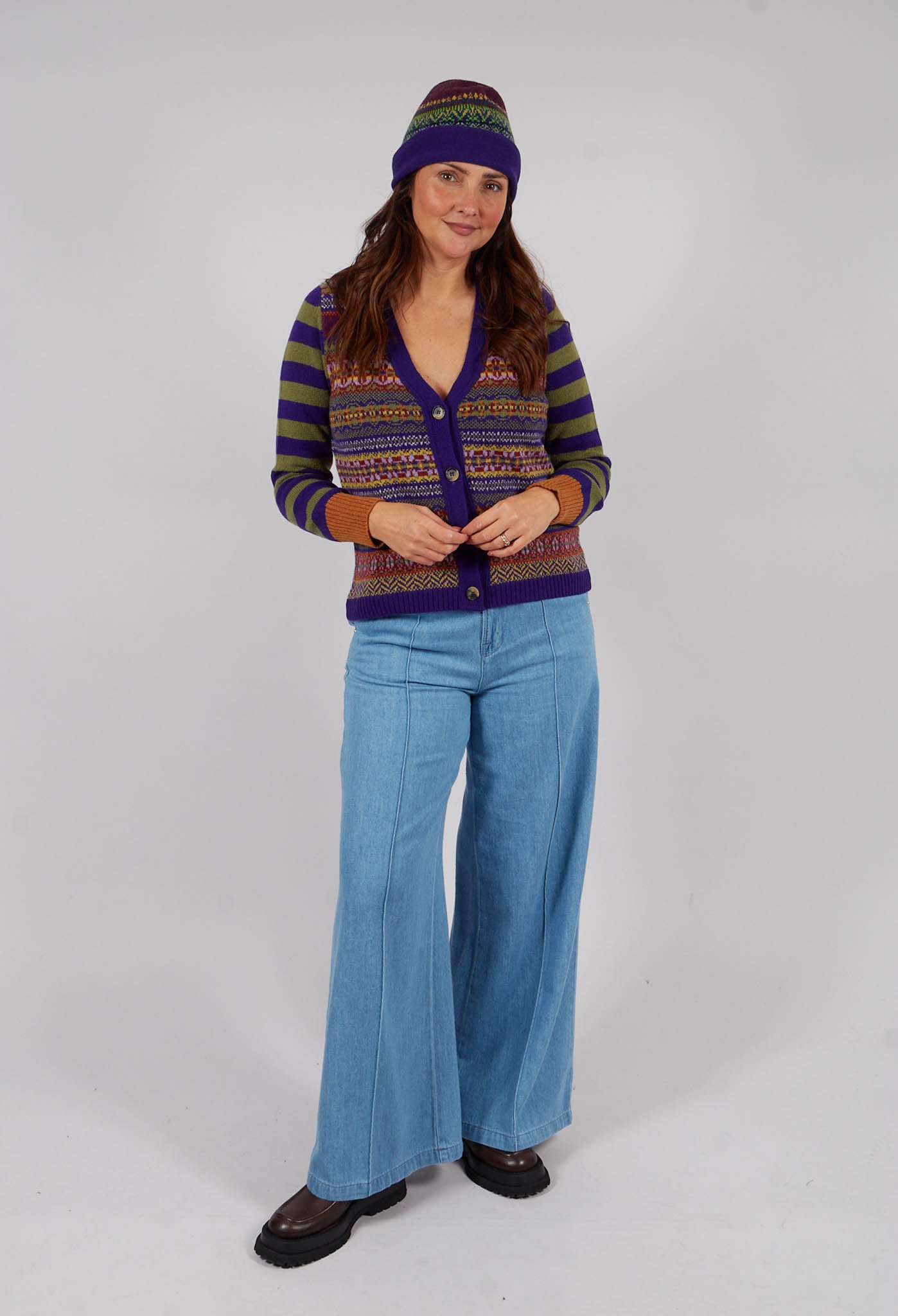 Stobo Fairisle V Cardigan in Mulberry by Eribe