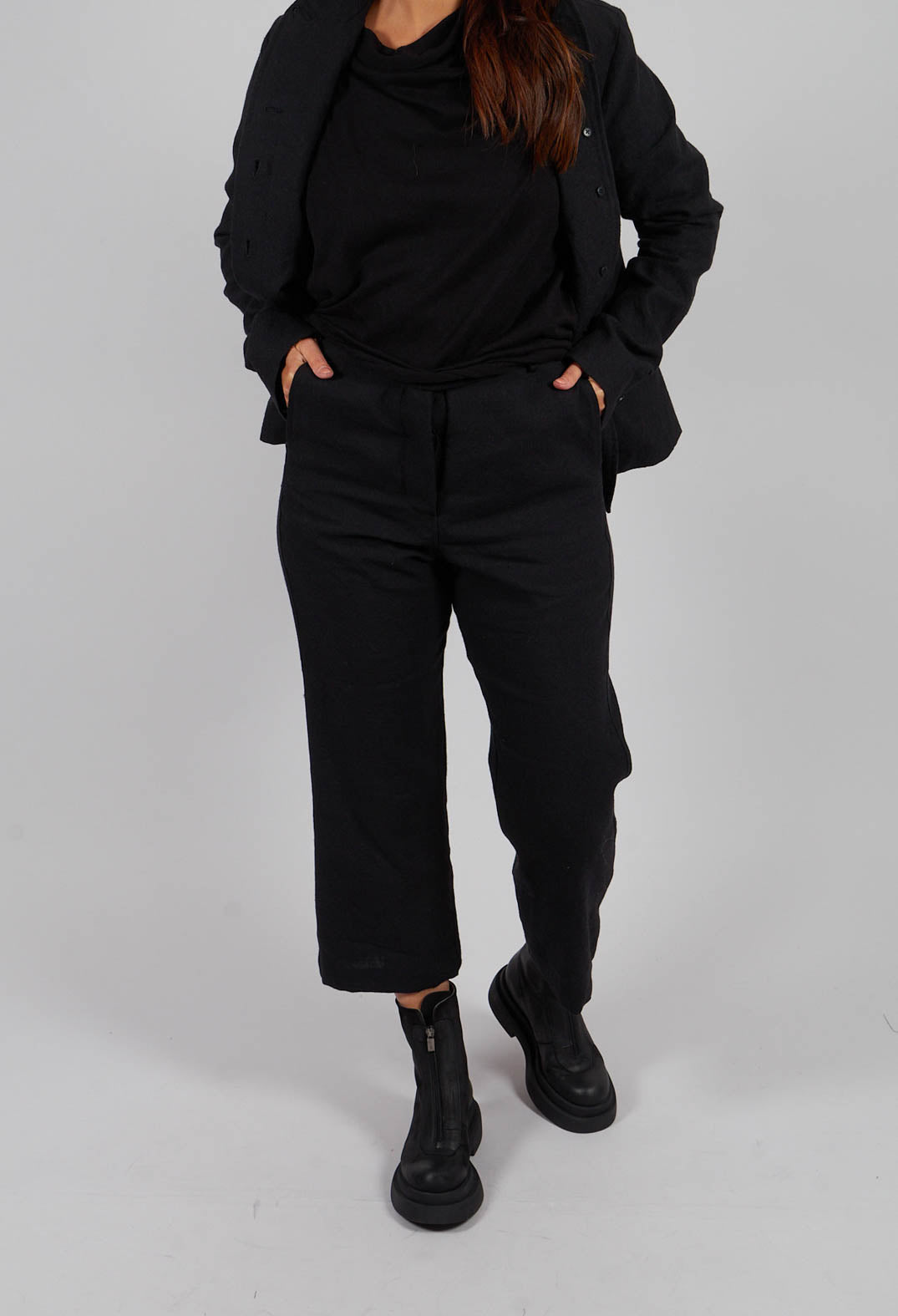 Straight Leg Trousers with Belt in Black - 1190104