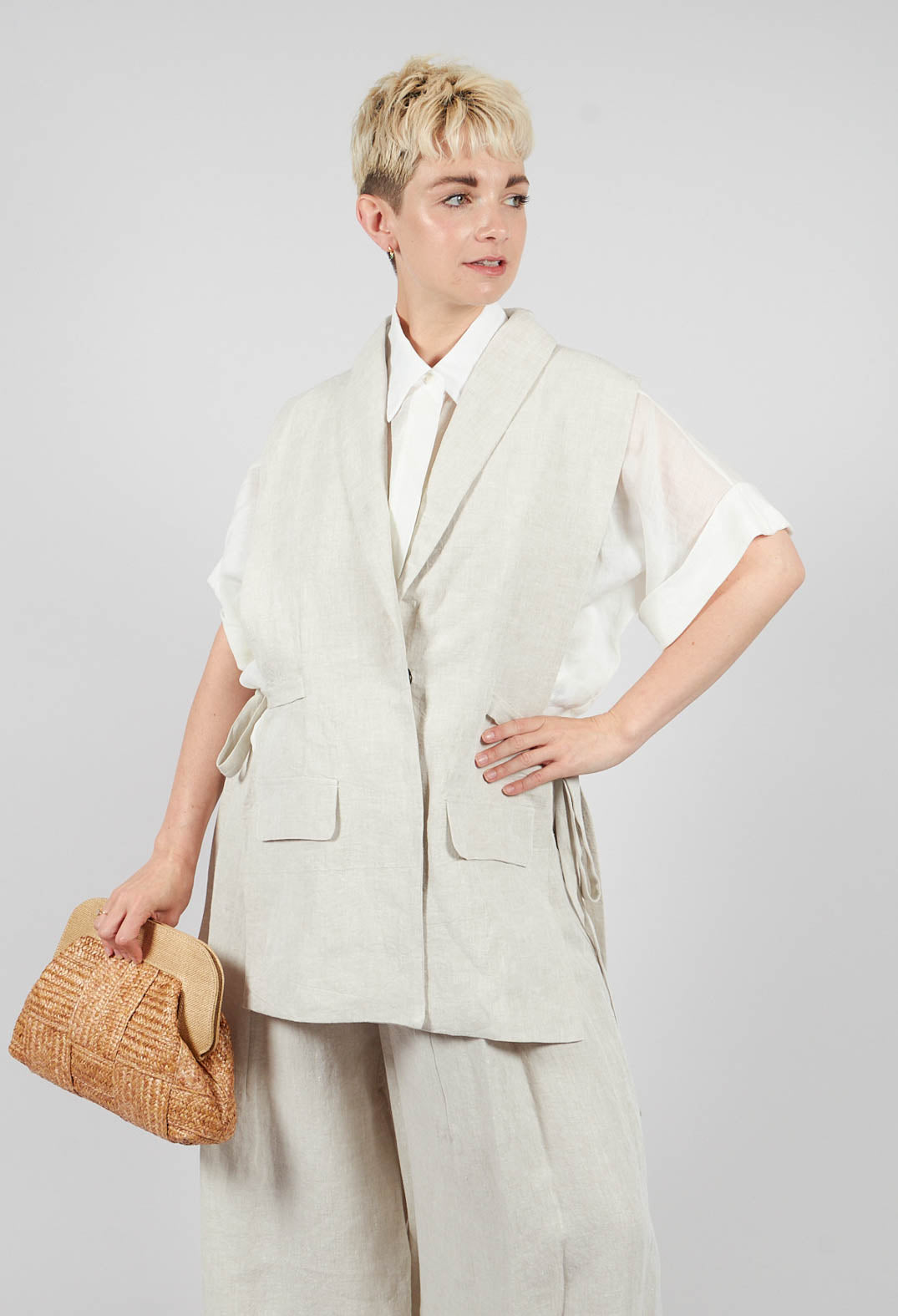 Strings Linen Waistcoat in Naturale