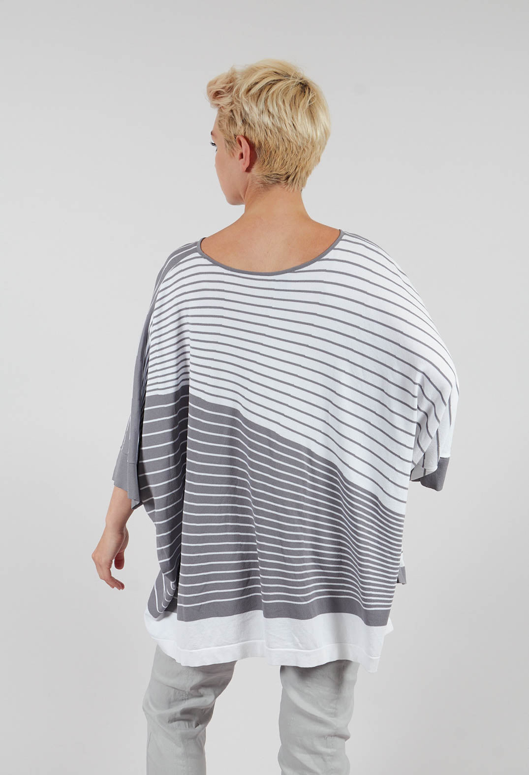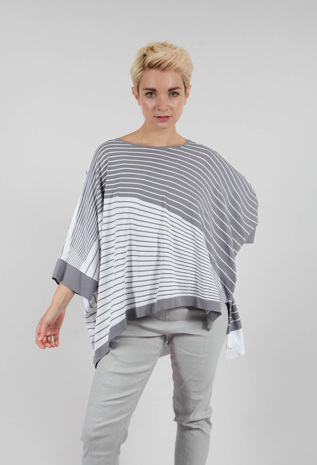 Striped Batwing Jumper in Grey and White