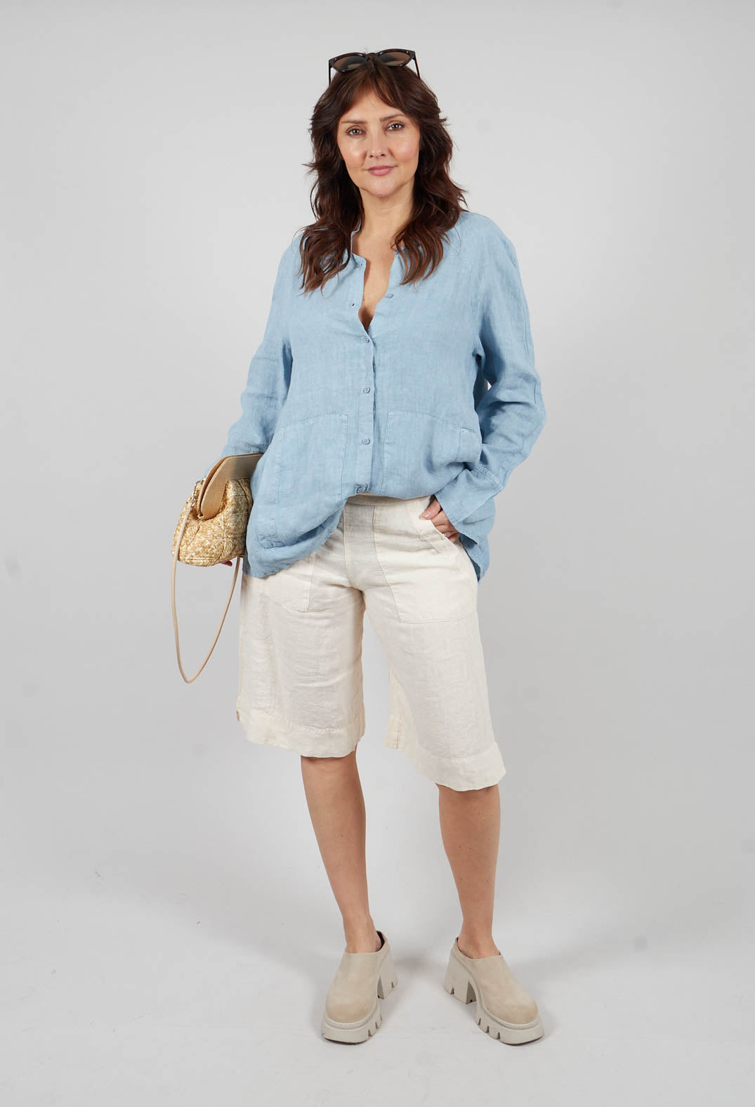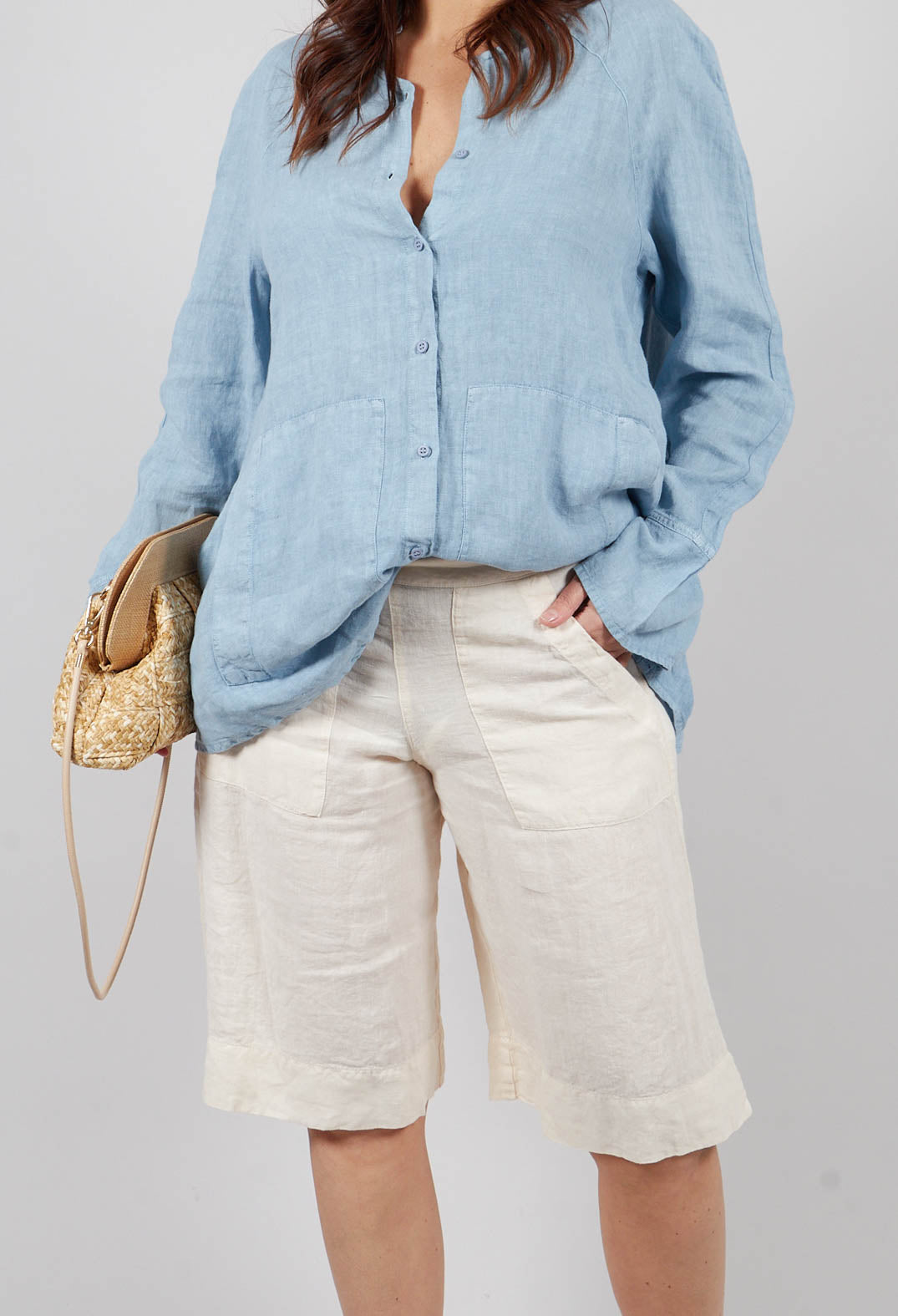 These light sand shorts exude effortless charm with their relaxed, wide-leg design and breathable fabric, making them the perfect companion for warmer days. The loose fit and straight cut create a laid-back silhouette, enhanced by the subtle stitching details and large, rectangular front pockets that bring a touch of utilitarian style. Crafted from lightweight, airy material, they offer both comfort and versatility, effortlessly transitioning from casual outings to weekend getaways. With a minimalist approach and thoughtful design, these shorts are a timeless addition to any warm-weather wardrobe.