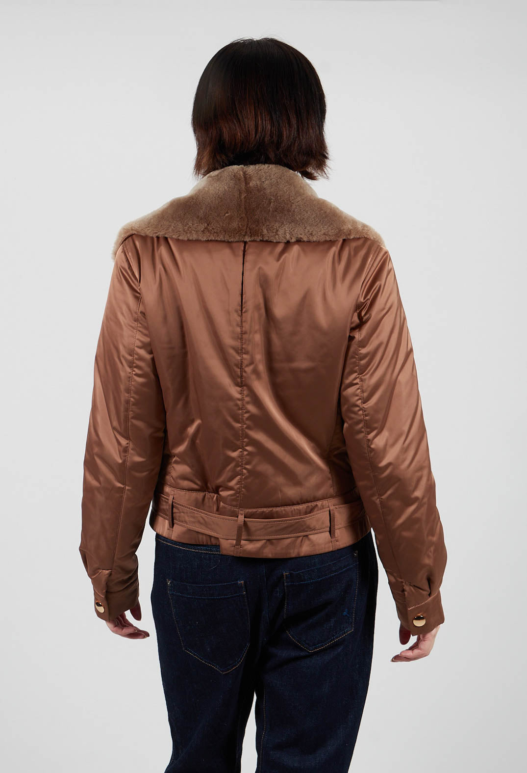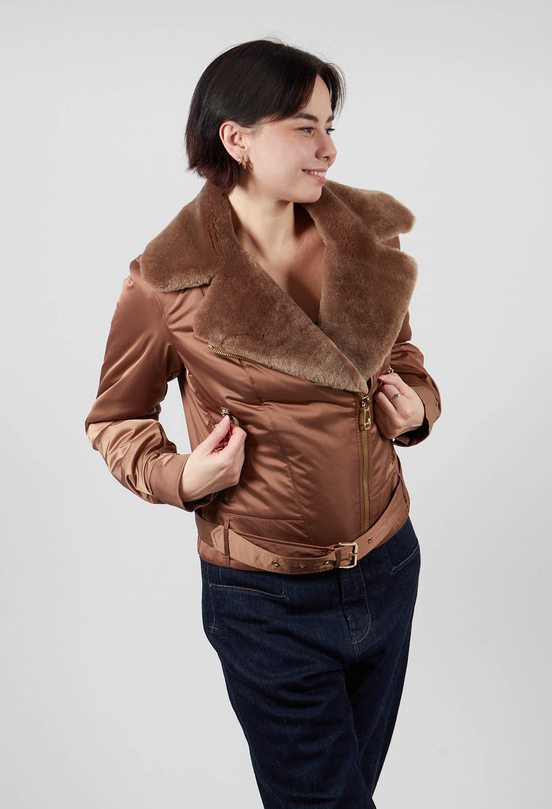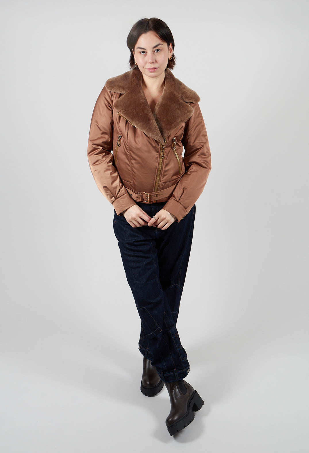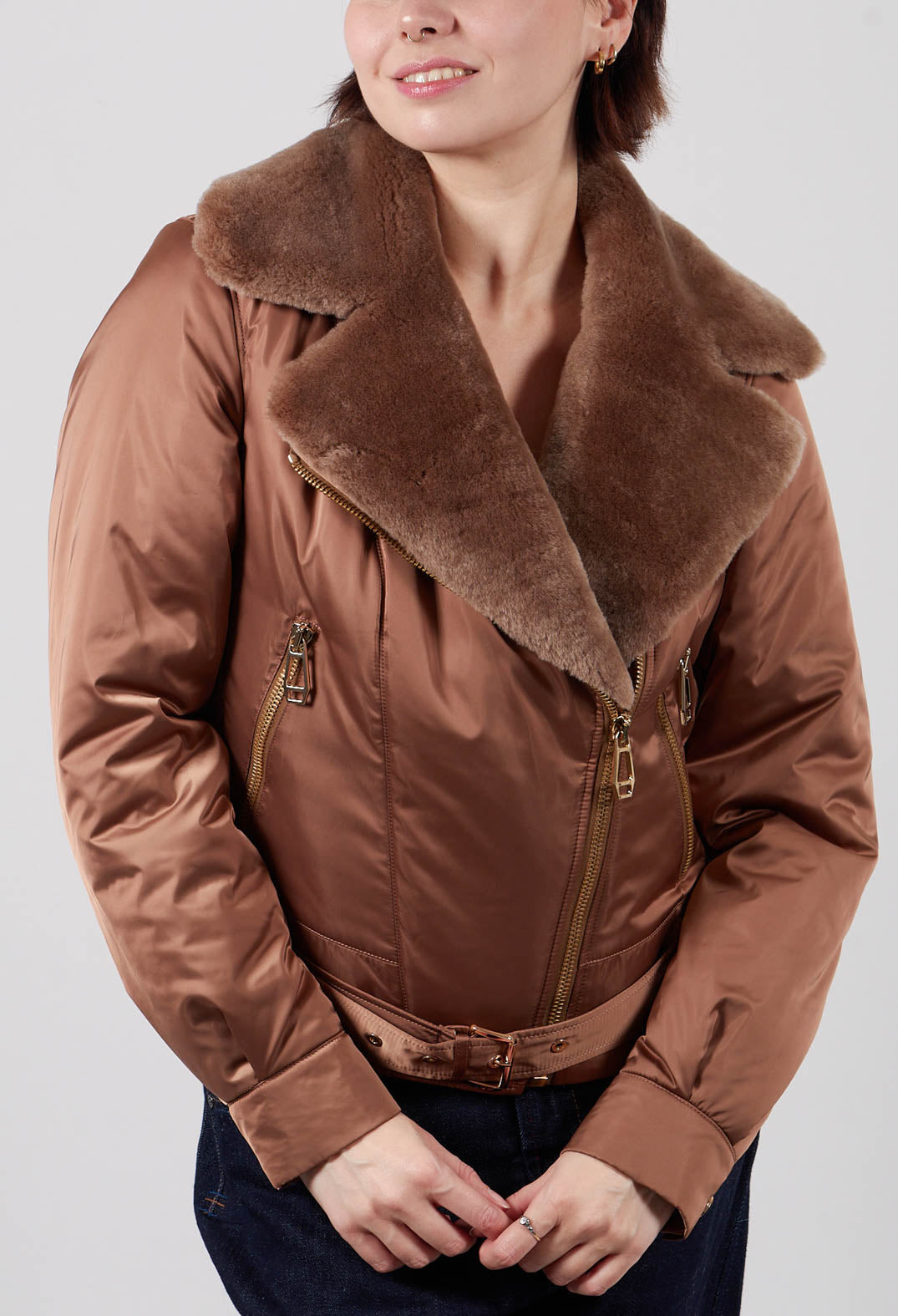 Textile Biker Coat in Amber