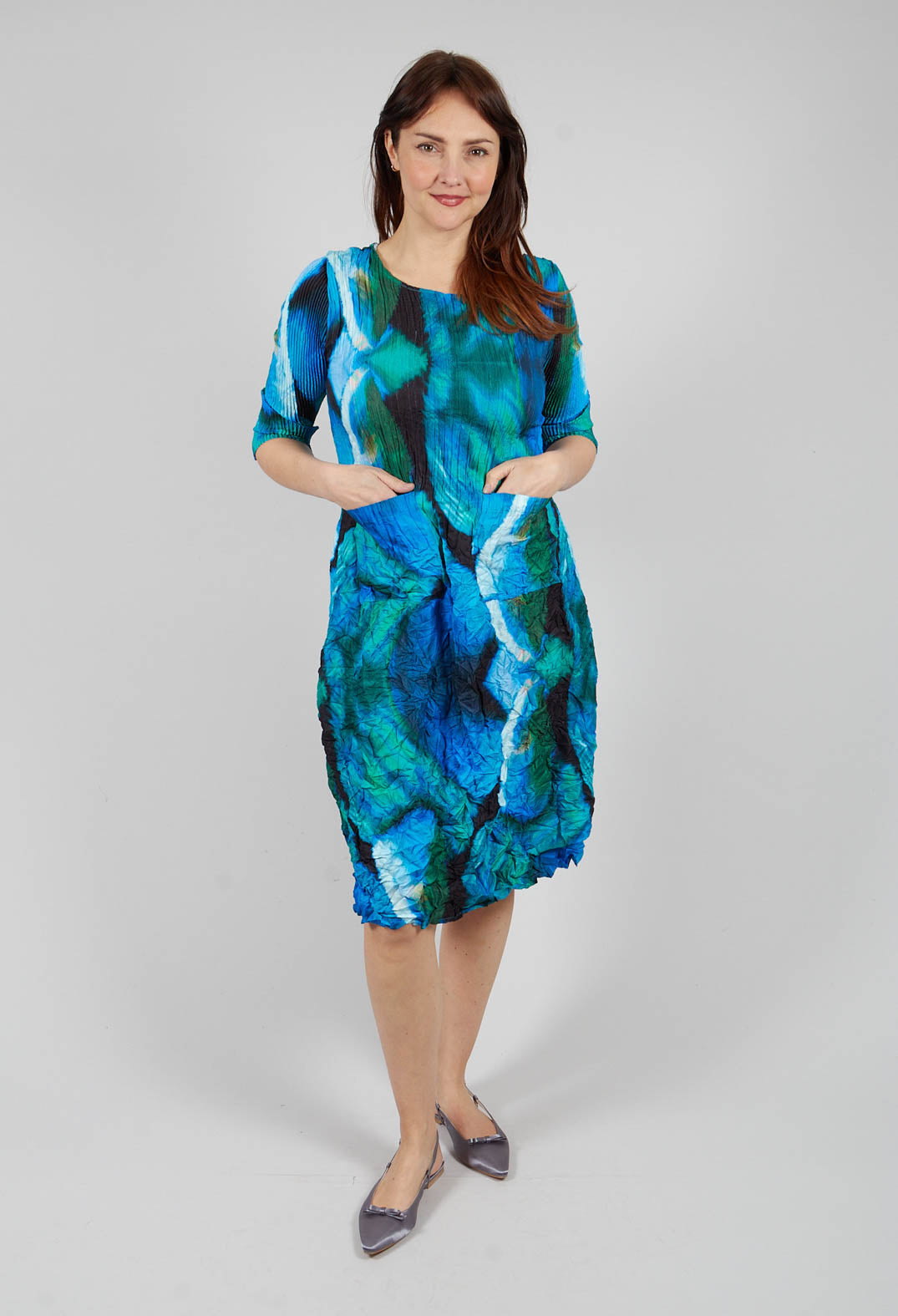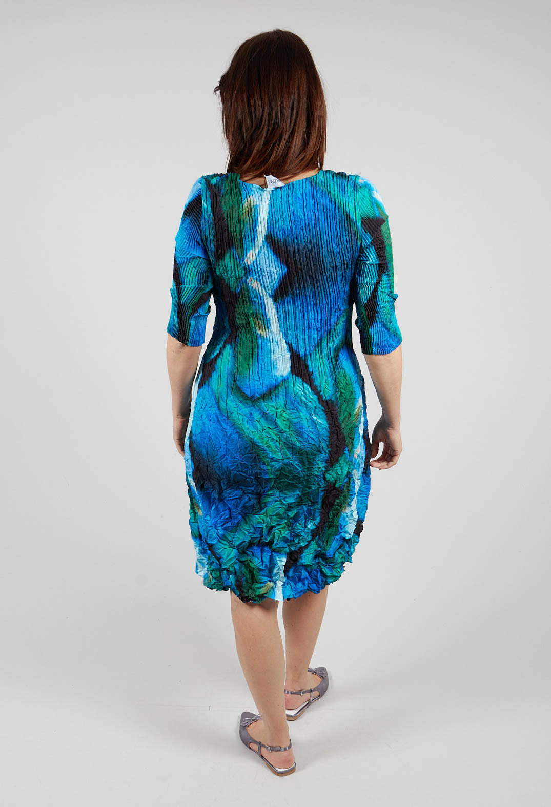 Three Quarter Sleeve Smash Dress in Aqua Bows