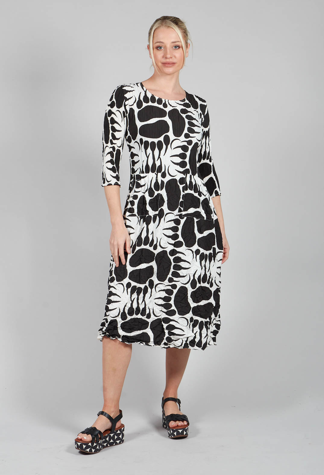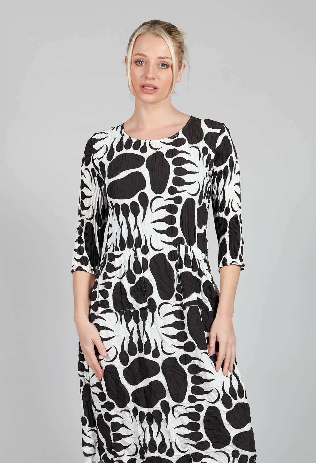 Three Quarter Sleeve Smash Dress in Black and White Moonbeam
