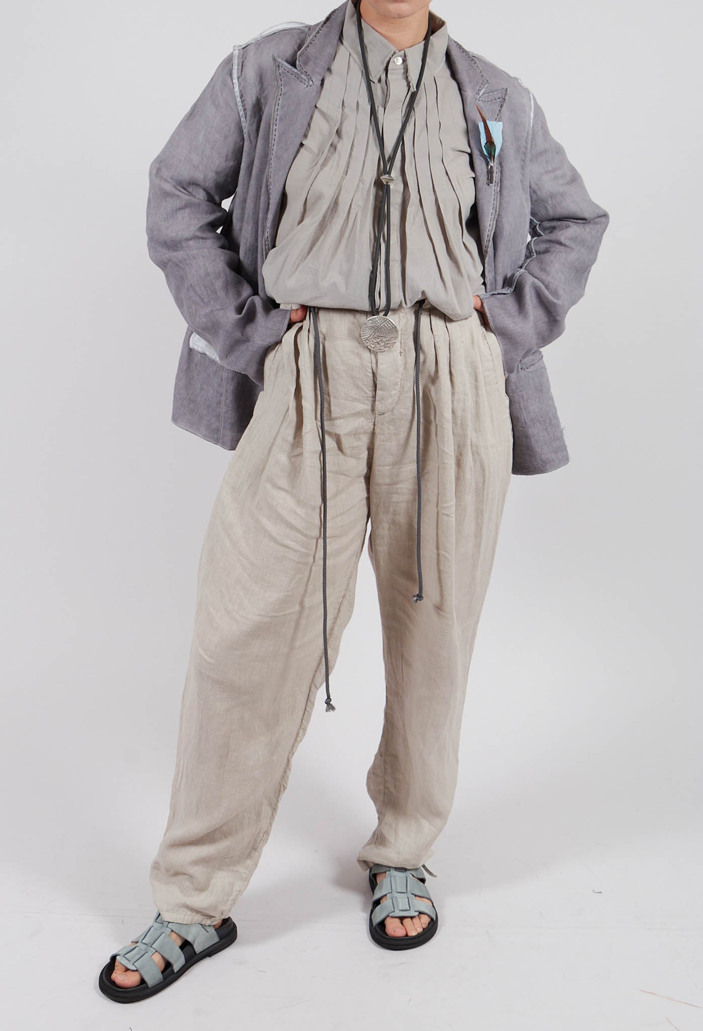 Vintage Look Linen Trousers in Original Beige