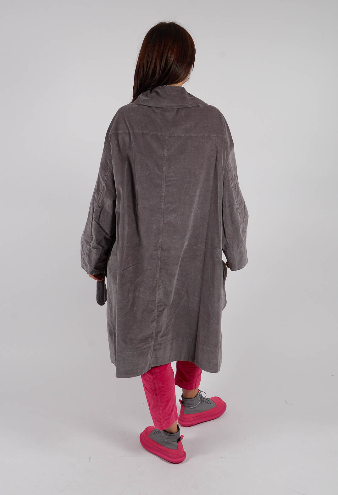 Velvet Oversized Coat with Feature Pockets in Dark Grey - 3231203