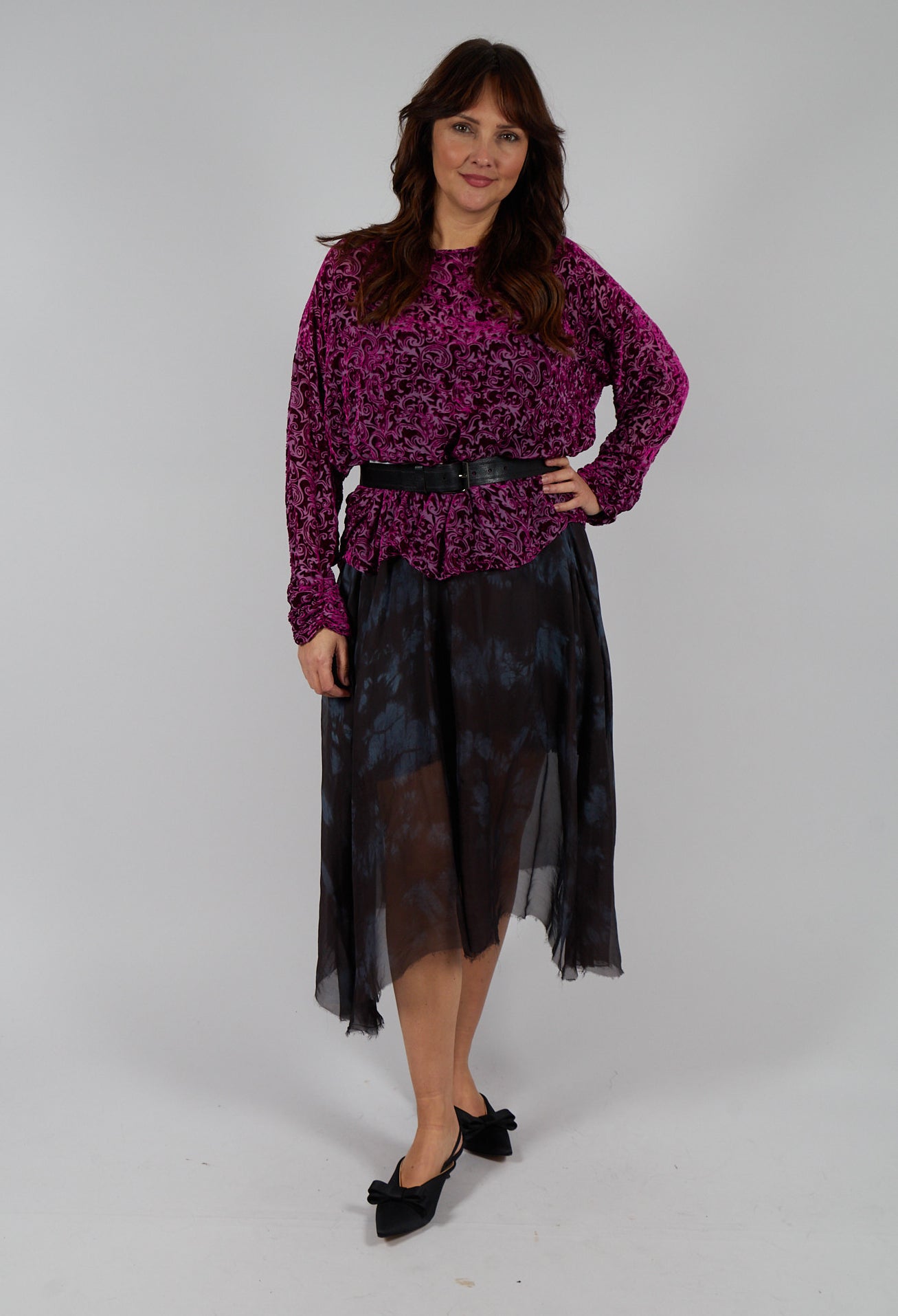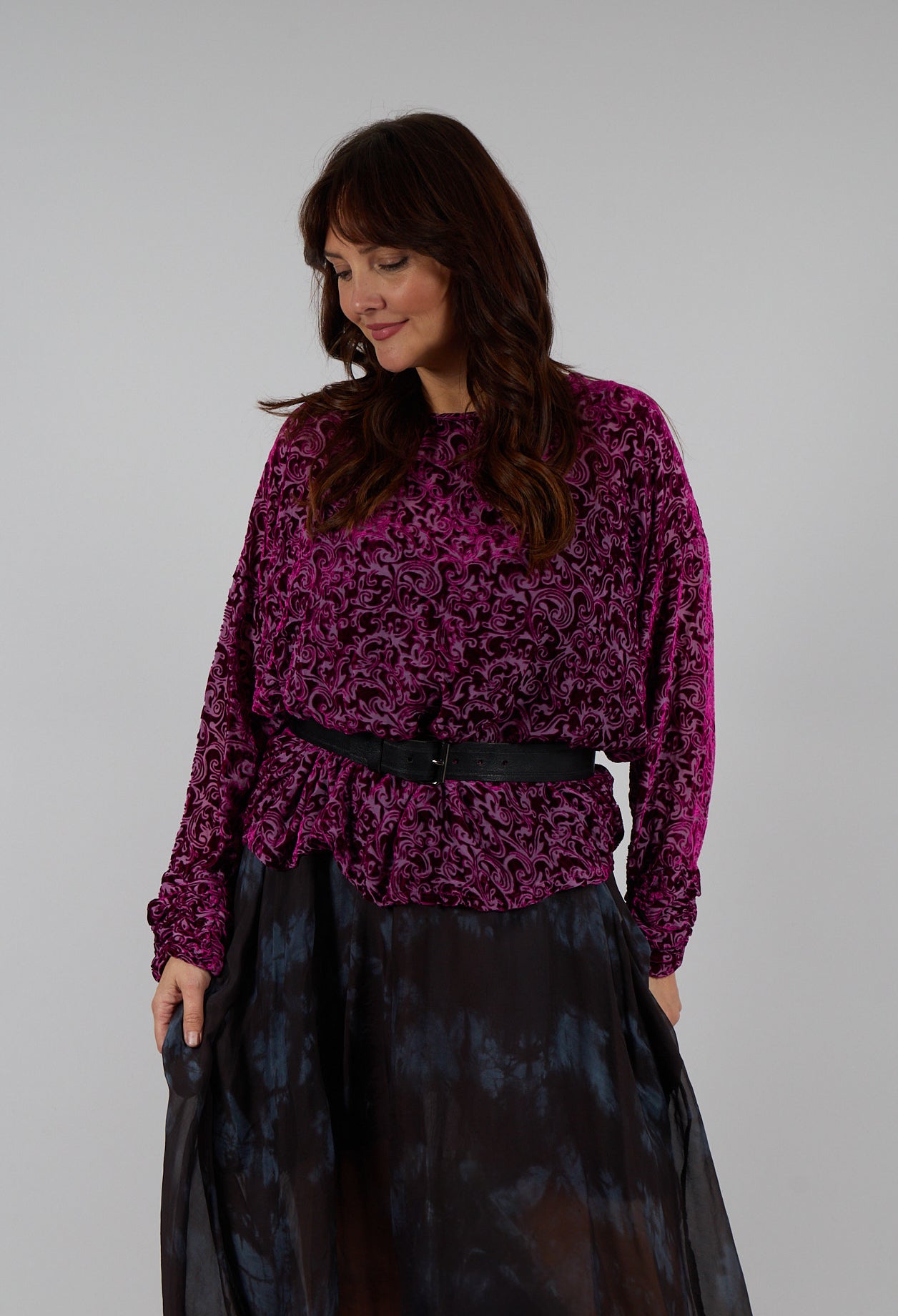 Velvet Patterned Wide Top in Fuchsia by Out of Xile