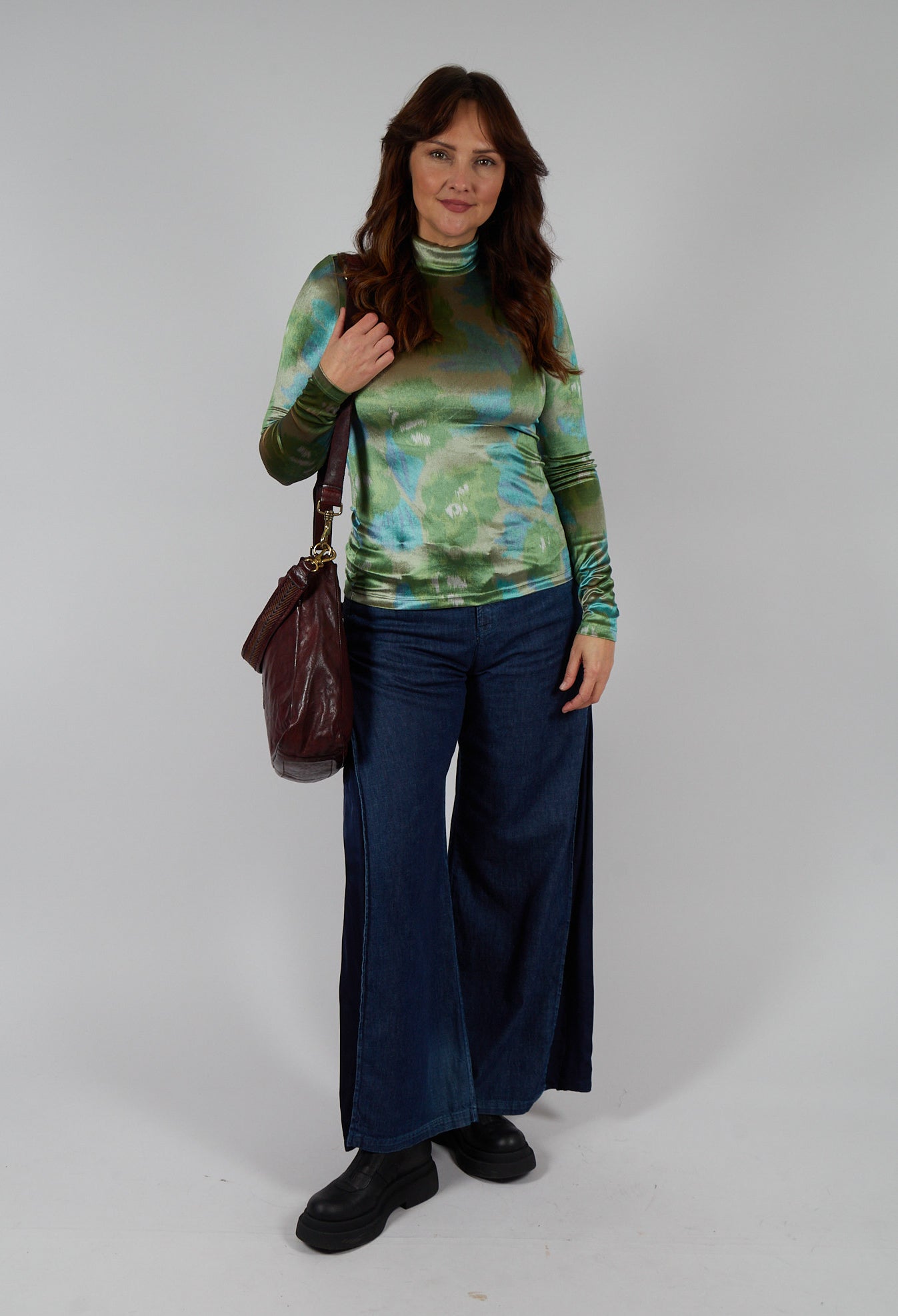 Velvet Turtleneck Top in Verde / Blu by Maliparmi