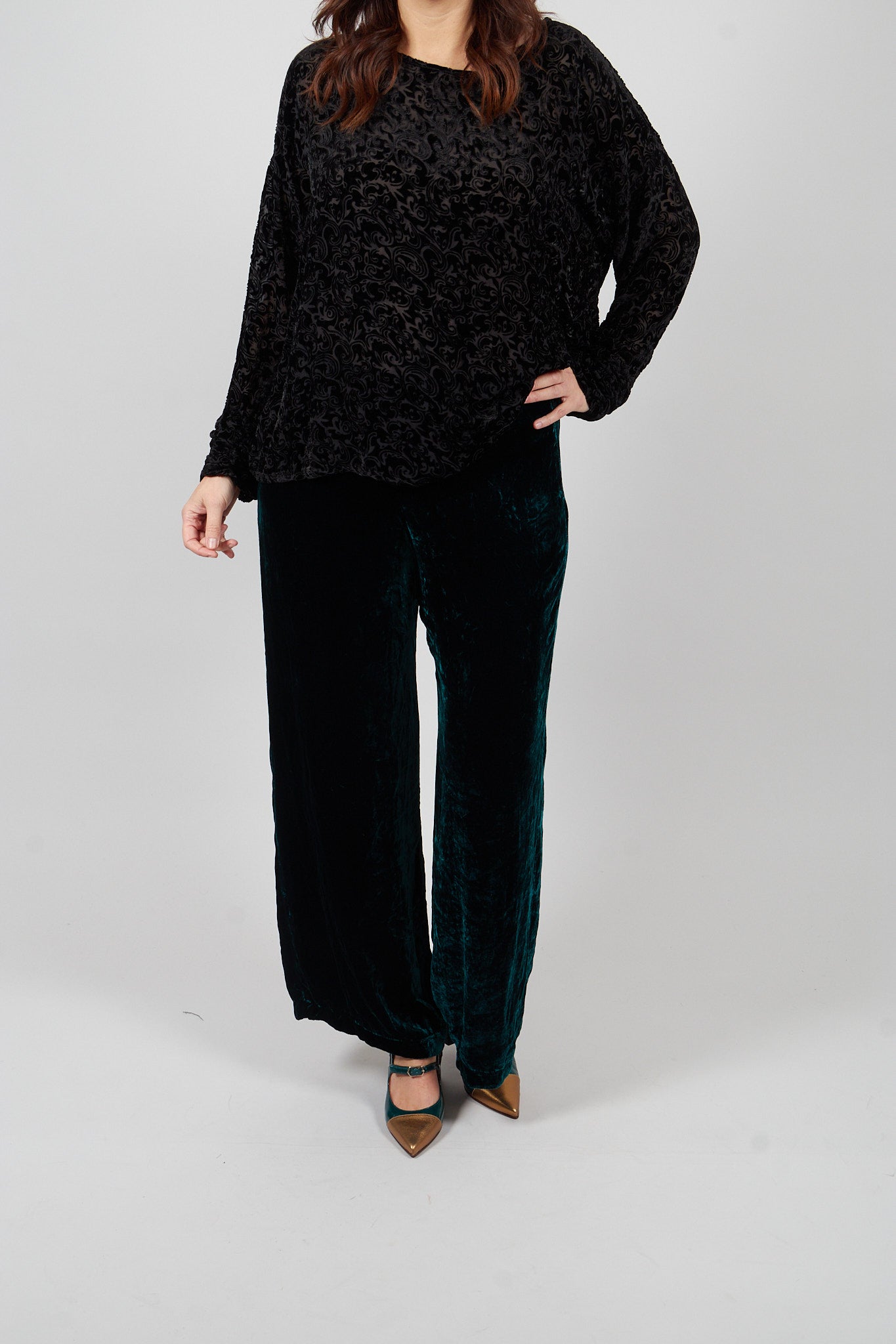 Velvet Wide Leg Trousers in Emerald by Out of Xile
