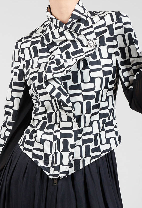 Zip Up Jacket with Mesh Panel Detail in Black and White by La Haine